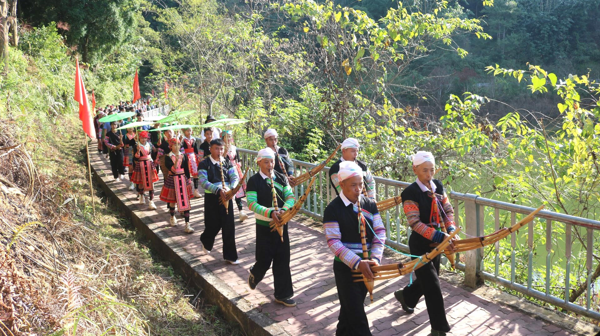 Chiều cùng ngày người dân địa phương và du khách hòa mình vào các hoạt động văn hóa, thể thao truyền thống như múa khèn, thổi sáo Mông, ném pao, các hội thi đẩy gậy, kéo co, giã bánh dày.