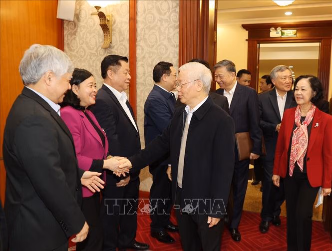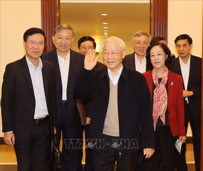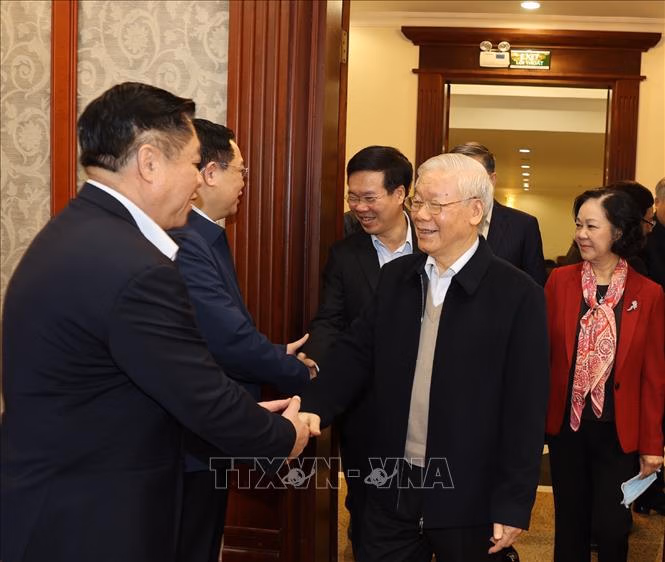 Tổng Bí thư, Chủ tịch nước nói: "Phải bắt tay ngay vào công việc, không được say sưa với Tết, nhất là triển khai thật tốt thực hiện các chủ trương Đại hội XIII đã đề ra, từ việc tổ chức học tập, xây dựng chương trình hành động, tất cả các ngành, các cấp, địa phương, cơ quan đều phải làm… Như tôi đã nói, Đại hội thành công chỉ là một bước ra định hướng lớn thôi, giờ phải cụ thể hóa, thể chế hóa, tất cả các cấp phải làm để không chỉ trên giấy. Tất cả công việc đang làm phải làm tiếp, thiếu sót gì phải chấn chỉnh ngay, ưu điểm phát huy theo tinh thần Đại hội XIII mới thông qua".