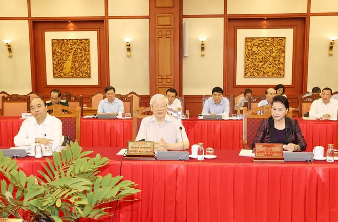 Buổi làm việc do Tổng Bí thư, Chủ tịch nước Nguyễn Phú Trọng chủ trì, có sự tham gia của Thủ tướng Chính phủ Nguyễn Xuân Phúc, Chủ tịch Quốc hội Nguyễn Thị Kim Ngân và các Ủy viên Bộ Chính trị khác.