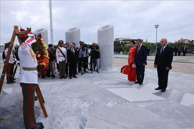 Lễ tưởng niệm diễn ra trang trọng với sự có mặt của Đội Danh dự thuộc các lực lượng vũ trang cách mạng Cuba. Sau khi thực hiện nghi lễ chào cờ hai nước, trong nền nhạc hùng tráng, vòng hoa tưởng niệm được các chiến sỹ trong đội nghi lễ đưa vào vị trí trang trọng dưới chân Tượng đài. Tiếp đó, Tổng Bí thư, Chủ tịch nước và Phu nhân được mời lên vị trí danh dự và dành một phút mặc niệm tưởng nhớ vị Anh hùng dân tộc Cuba, người đã gieo mầm cho tình hữu nghị giữa hai đất nước anh em ở cách xa nhau nửa địa cầu khi ngay từ cuối thế kỷ 19 đã có bài bút ký nổi tiếng “Một cuộc dạo chơi trên đất của người An Nam'' đăng trên tạp chí Tuổi Vàng, trong đó ca ngợi truyền thống yêu nước và chống ngoại xâm bất khuất của nhân dân Việt Nam.
