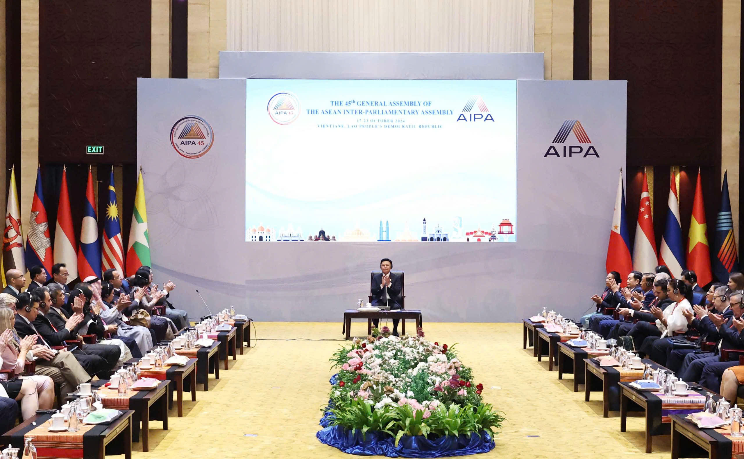 Sáng 19/10, Đại hội đồng liên Nghị viện ASEAN lần thứ 45 (AIPA-45) đã khai mạc trọng thể tại Trung tâm Hội nghị Quốc gia ở Thủ đô Vientiane, Lào, với sự tham dự của Đoàn đại biểu các Nghị viện/Quốc hội thành viên, Quan sát viên và Đối tác phát triển của AIPA. Chủ tịch Quốc hội Trần Thanh Mẫn dẫn đầu Đoàn đại biểu cấp cao Quốc hội Việt Nam tham dự Lễ khai mạc. Tổng Bí thư, Chủ tịch nước Lào Thongloun Sisoulith có bài phát biểu quan trọng tại Lễ khai mạc.
