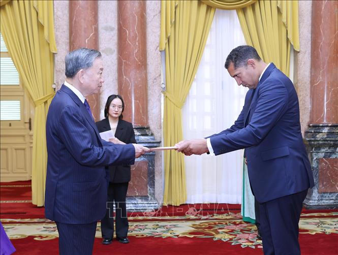 Tổng Bí thư, Chủ tịch nước Tô Lâm nhận Quốc thư từ Đại sứ Algeria tại Việt Nam Sofiane Chaib. Ảnh: Lâm Khánh/TTXVN