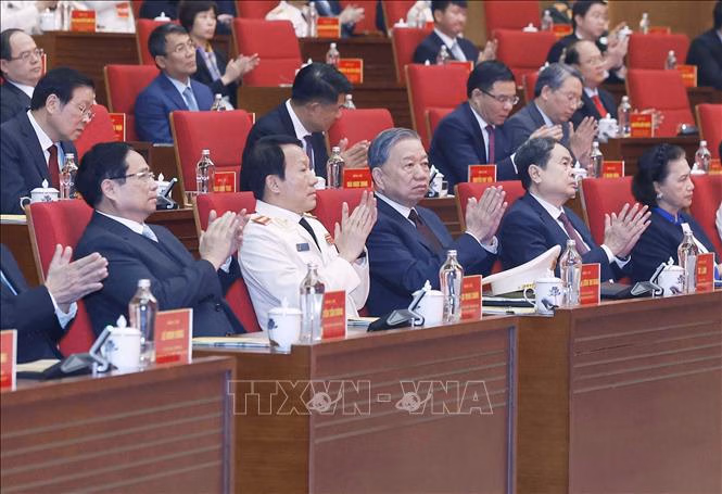 Cùng dự có các đồng chí: Phạm Minh Chính, Ủy viên Bộ Chính trị khóa XIII, Thủ tướng Chính phủ; Nguyễn Tấn Dũng, nguyên Ủy viên Bộ Chính trị, nguyên Thủ tướng Chính phủ; Trần Thanh Mẫn, Ủy viên Bộ Chính trị, Chủ tịch Quốc hội; Nguyễn Thị Kim Ngân, nguyên Ủy viên Bộ Chính trị, nguyên Chủ tịch Quốc hội; các nguyên Ủy viên Bộ Chính trị, nguyên Thường trực Ban Bí thư: Đại tướng Lê Hồng Anh, Trần Quốc Vượng.