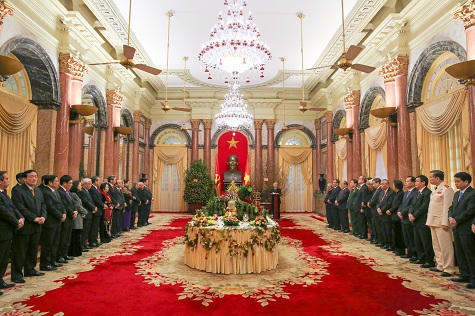 Ngày 3/2, tại Phủ Chủ tịch, nhân dịp Tết Nguyên đán Bính Thân 2016, Tổng Bí thư Nguyễn Phú Trọng đã chủ trì gặp mặt, chúc Tết các vị lão thành cách mạng, các vị lãnh đạo, nguyên lãnh đạo Đảng, Nhà nước, Mặt trận Tổ quốc Việt Nam, cùng toàn thể đồng chí, đồng bào, chiến sỹ cả nước, kiều bào ở nước ngoài.