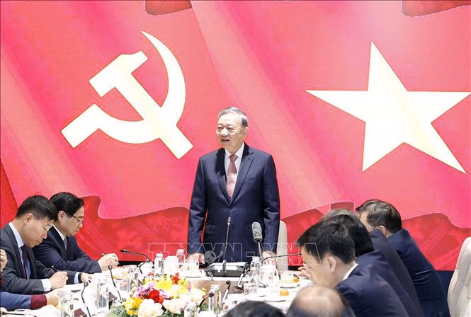 Tại buổi làm việc, Tổng Bí thư Tô Lâm chào mừng các đồng chí Đại sứ, Trưởng các cơ quan đại diện ngoại giao Việt Nam tại nước ngoài về dự Đại hội, đánh giá cao sự tham gia đóng góp tích cực, xây dựng văn kiện Đại hội; có nhiều hoạt động tích cực tuyên truyền, phổ biến thông tin về Đại hội ở nước sở tại.