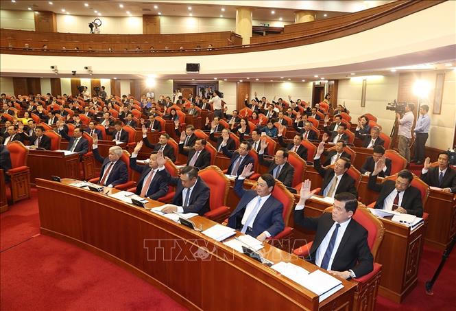 Trung ương biểu quyết thông qua Báo cáo, làm cơ sở để Bộ Chính trị, Ban Bí thư tiếp tục phát huy những ưu điểm, bài học kinh nghiệm thành công có được trong nửa đầu nhiệm kỳ khóa XIII, khẩn trương, nghiêm túc khắc phục những hạn chế, khuyết điểm còn tồn tại để hoàn thành tốt hơn nữa trọng trách của mình trong nửa cuối nhiệm kỳ này, góp phần cùng với toàn Đảng, toàn dân, toàn quân ta thực hiện thắng lợi Nghị quyết Đại hội XIII của Đảng.