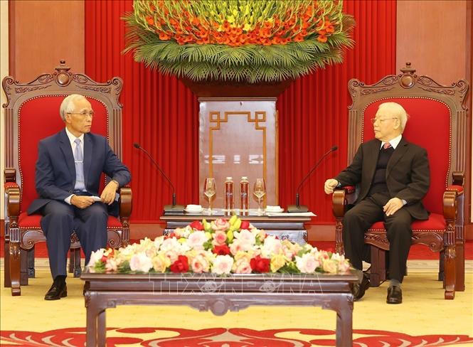 Tổng Bí thư Nguyễn Phú Trọng tiếp Đoàn đại biểu cấp cao Ban Tuyên huấn Trung ương Đảng NDCM Lào