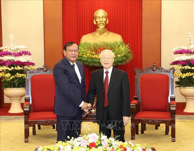 Tổng Bí thư Nguyễn Phú Trọng nhấn mạnh truyền thống lịch sử đoàn kết, gắn bó giúp đỡ lẫn nhau giữa hai Đảng, hai Nhà nước là tài sản quý giá, một trong những nhân tố quan trọng nhất, nguồn sức mạnh to lớn nhất đối với sự nghiệp đấu tranh giải phóng dân tộc giành độc lập trước đây cũng như trong công cuộc bảo vệ, xây dựng phát triển đất nước hiện nay, đồng thời khẳng định cùng nhau giữ gìn, vun đắp cho mối quan hệ Việt Nam-Campuchia ngày càng phát triển. Hai Đảng có chung nguồn gốc từ Đảng Cộng sản Đông Dương, hai nước là láng giềng anh em. Đảng Cộng sản Việt Nam và nhân dân Việt Nam trân trọng sự hợp tác và giúp đỡ của Đảng và nhân dân Campuchia đối với sự nghiệp giải phóng dân tộc và xây dựng, bảo vệ đất nước của nhân dân Việt Nam.