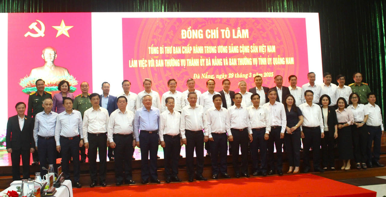 Trở lại với 2 địa phương Quảng Nam và Đà Nẵng, trên cơ sở báo cáo và ý kiến phát biểu của lãnh đạo các bộ, ngành trung ương, kết luận buổi làm việc, Tổng Bí thư Tô Lâm biểu dương những kết quả khá toàn diện của 2 địa phương đã đạt được trong thời gian qua.