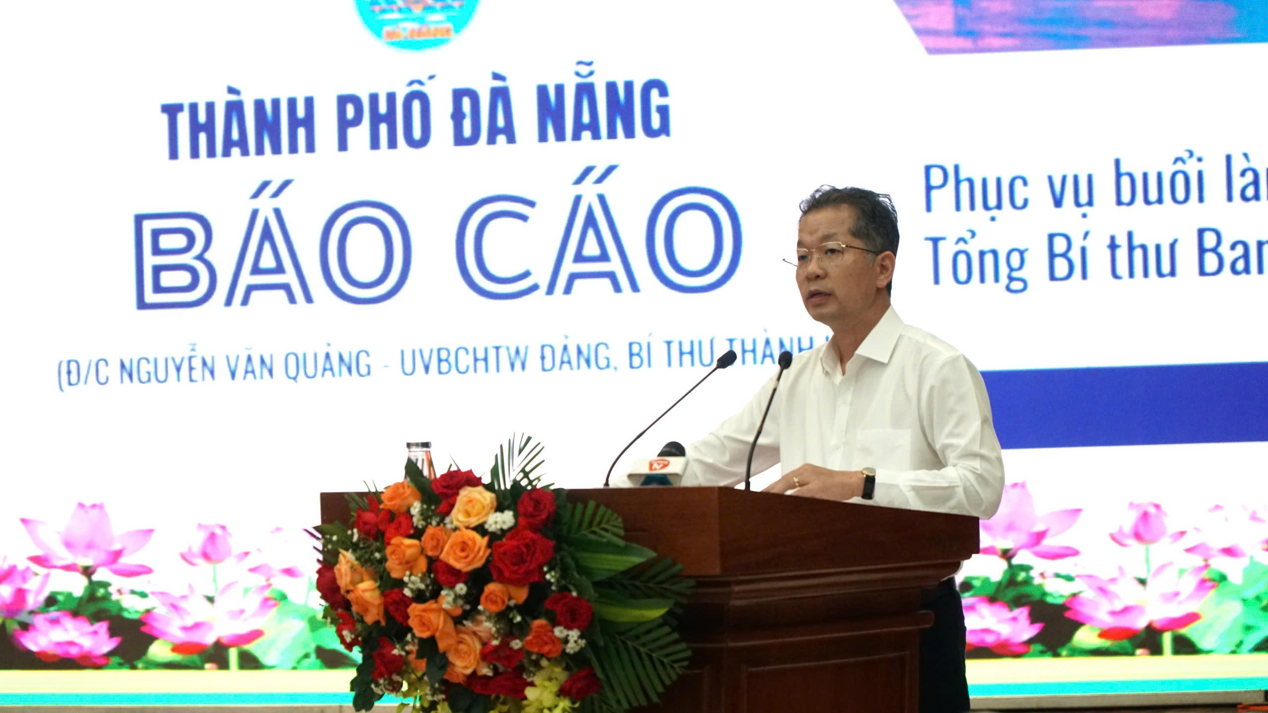 Bí thư Thành uỷ Đà Nẵng Nguyễn Văn Quảng báo cáo, kiến nghị với Đoàn công tác của Tổng Bí thư Tô Lâm |