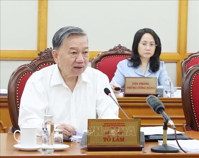 | Tổng Bí thư Tô Lâm chủ trì cuộc họp của Bộ Chính trị, Ban Bí thư. Ảnh: Thống Nhất/TTXVN |