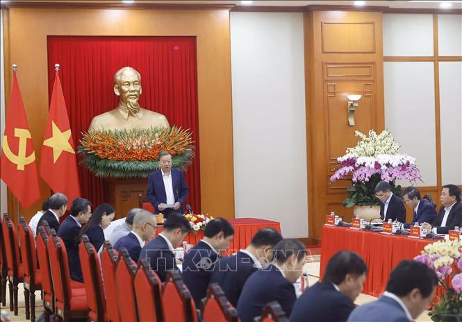 Sáng 4/3, tại Trụ sở Trung ương Đảng, Tổng Bí thư Tô Lâm, Trưởng ban Chỉ đạo Tổng kết 100 năm Đảng lãnh đạo cách mạng Việt Nam (1930-2030), định hướng lãnh đạo phát triển đất nước trong 100 năm tiếp theo (2030-2130) và tổng kết 40 năm thực hiện Cương lĩnh xây dựng đất nước trong thời kỳ quá độ lên chủ nghĩa xã hội (Ban Chỉ đạo) chủ trì cuộc làm việc với các Tổ Biên tập, triển khai các nội dung nhiệm vụ tổng kết.