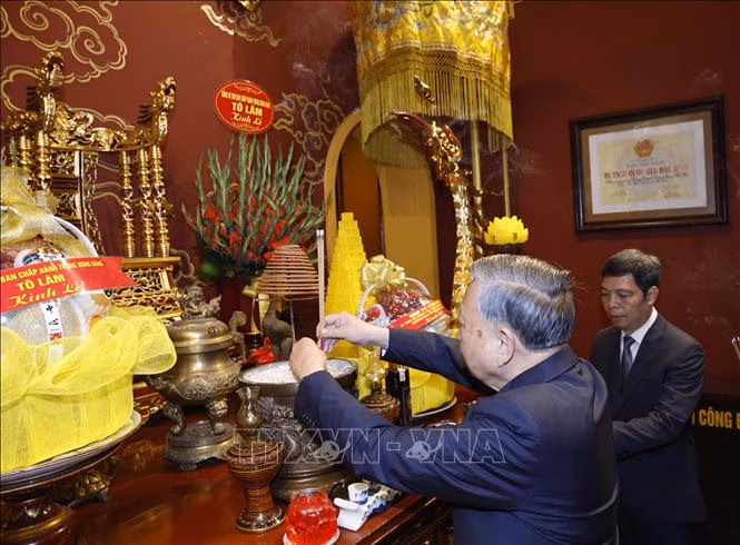 Trong không khí ấm áp của ngày Tết, Tổng Bí thư Tô Lâm và các đại biểu đã dâng hương bày tỏ lòng thành kính, tưởng nhớ, tri ân công đức các bậc tiền nhân đã đóng góp nhiều công lao xây dựng và phát triển đất nước; đồng thời cầu mong các bậc tiền nhân phù hộ cho quốc thái dân an, nhân dân ấm no, hạnh phúc.
