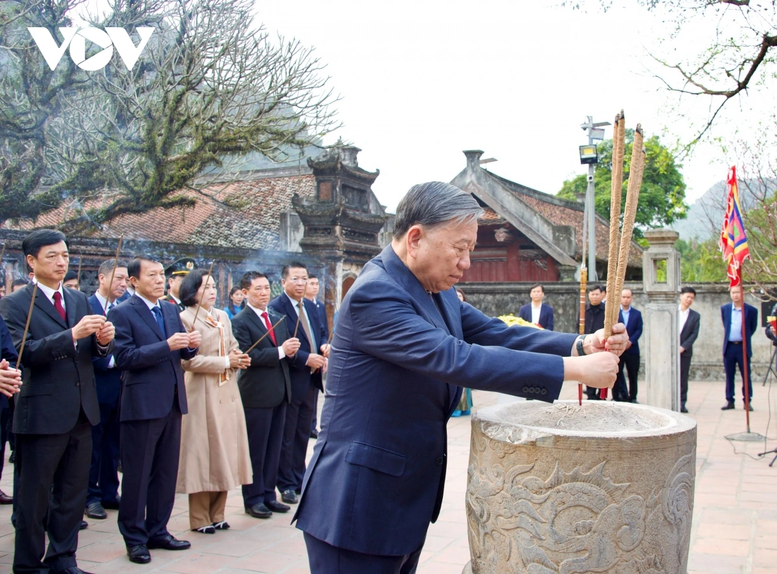 Sáng 31/1 (mùng 3 Tết Ất Tỵ), tại Khu Di tích Quốc gia đặc biệt Cố đô Hoa Lư (tỉnh Ninh Bình), Tổng Bí thư Tô Lâm đã dâng hương tại Đền thờ Vua Đinh Tiên Hoàng và Đền thờ Vua Lê Đại Hành, tưởng nhớ các bậc tiên đế có công với đất nước.