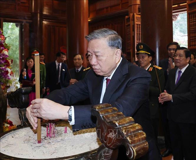 Với truyền thống tốt đẹp “Uống nước nhớ nguồn” của dân tộc Việt Nam, trước đó, Tổng Bí thư Tô Lâm và Đoàn công tác Trung ương đã về Đền Chung Sơn - Đền thờ Gia tiên Chủ tịch Hồ Chí Minh thuộc xã Kim Liên, huyện Nam Đàn, tỉnh Nghệ An, thành kính dâng hoa, dâng hương, tưởng niệm bày tỏ lòng biết ơn sâu sắc đối với Chủ tịch Hồ Chí Minh và những người thân yêu trong gia đình của Người.
