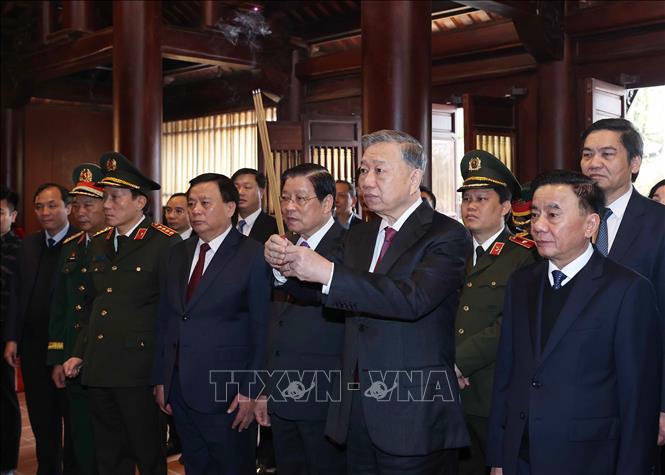 Tổng Bí thư Tô Lâm dâng hương tưởng niệm Chủ tịch Hồ Chí Minh tại Khu di tích Quốc gia đặc biệt Kim Liên. Ảnh: Thống Nhất/TTXVN