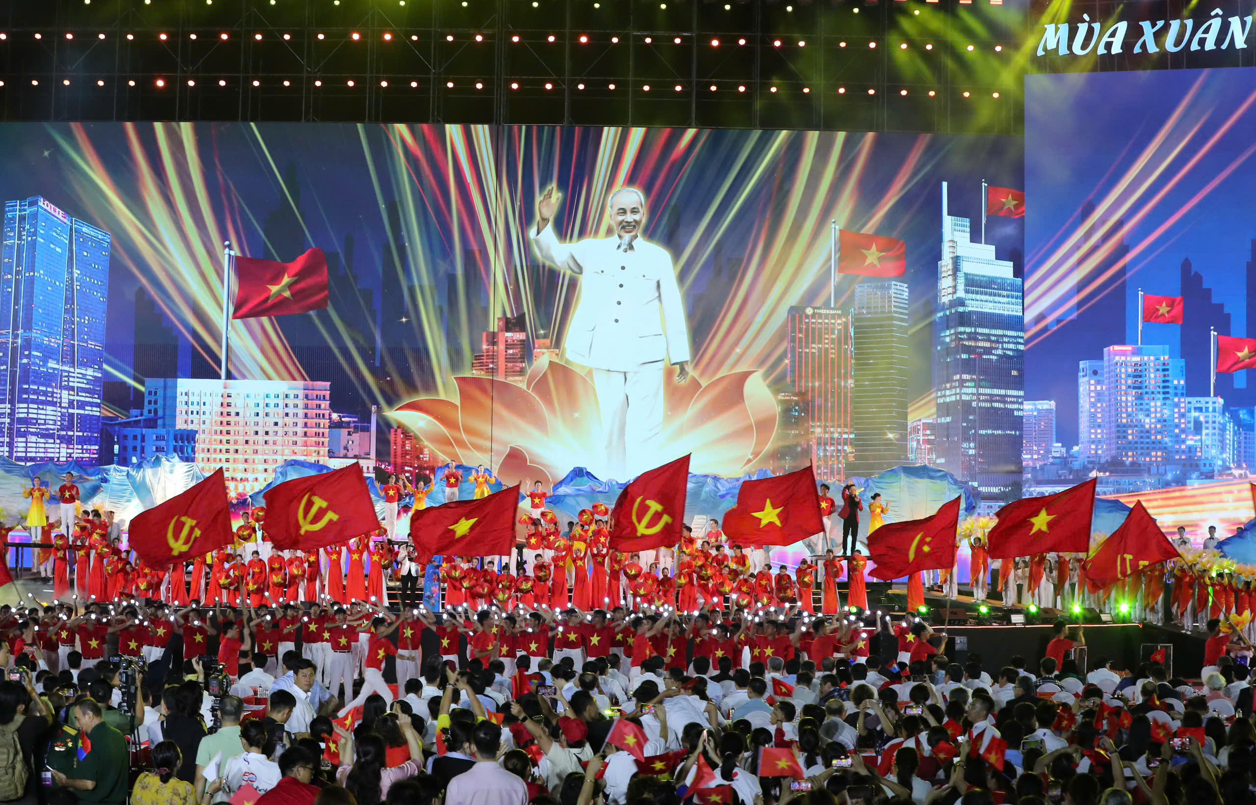 “Bài ca Hồ Chí Minh” cùng tiếng hát Vũ Thắng Lợi vang lên mô tả lại cuộc tổng tấn công Xuân Mậu Thân 1968 với những chiến công và sự hy sinh oanh liệt, trong khi ca khúc “Niềm tin chiến thắng” (Lê Quang) do tốp ca “Anh trai vượt ngàn chông gai” gồm NSND Tự Long, Hà Lê, Soobin, Hồng Sơn, Jun Phạm, Hợp xướng VNOB - Saigon Voices thể hiện. Ca khúc “Viết tiếp câu chuyện hòa bình” của nhạc sĩ Nguyễn Văn Chung được nhóm MTV, ca sĩ Ngọc Khánh Chi thể hiện cùng dàn nhạc giao hưởng VNOB.