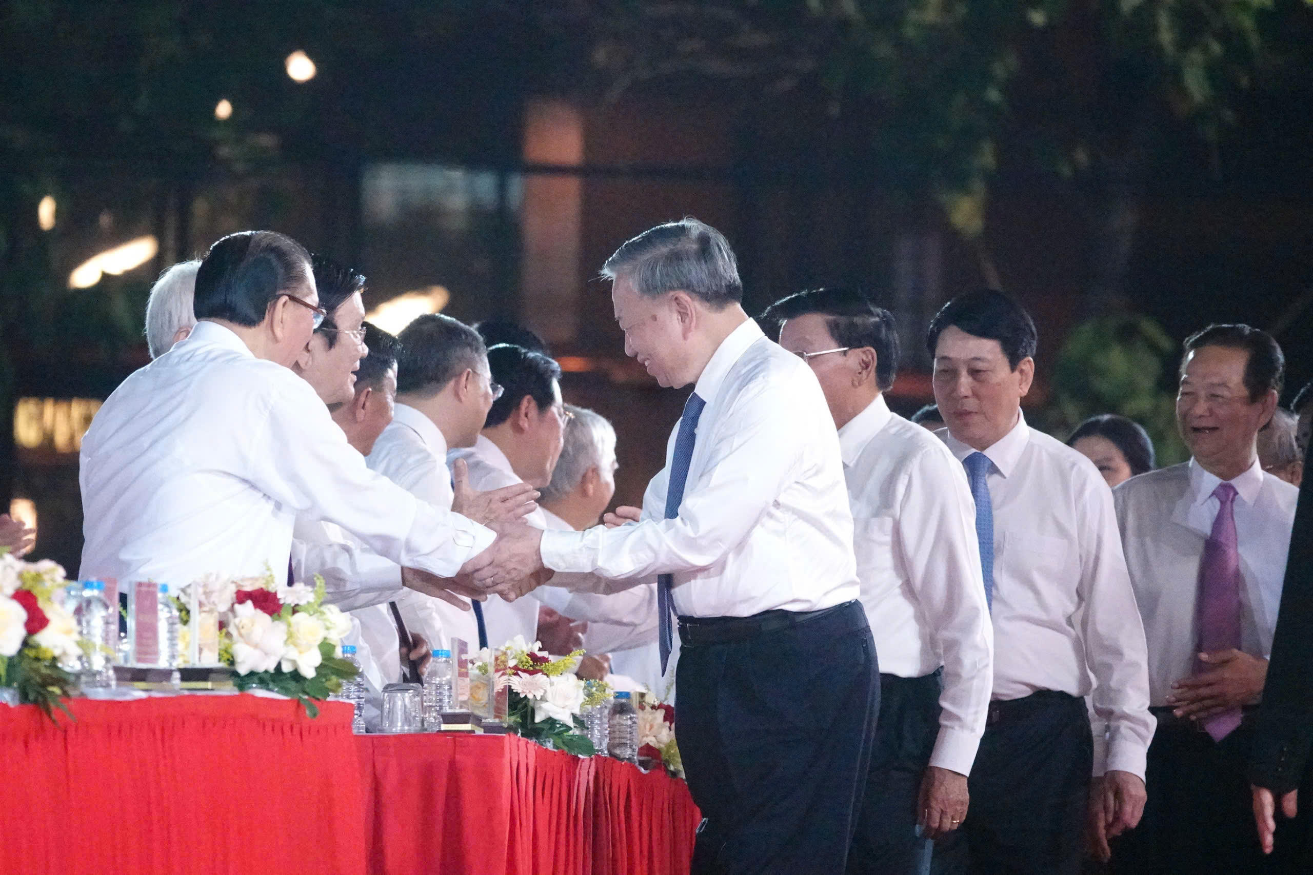 (PLVN) - Tối 29/4, Tổng Bí thư Tô Lâm và phu nhân, các lãnh đạo Đảng, Nhà nước cùng lãnh đạo các nước trên thế giới, các chính đảng và bạn bè quốc tế dự chương trình nghệ thuật đặc biệt “Mùa xuân thống nhất” diễn ra tại Công viên Sáng tạo, TP Thủ Đức, TP HCM.