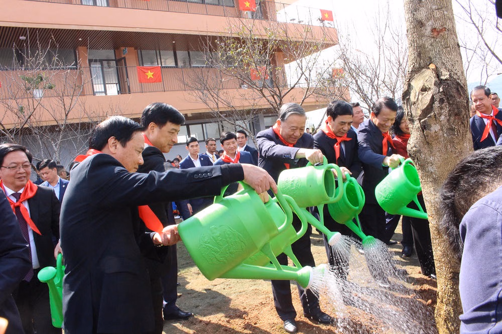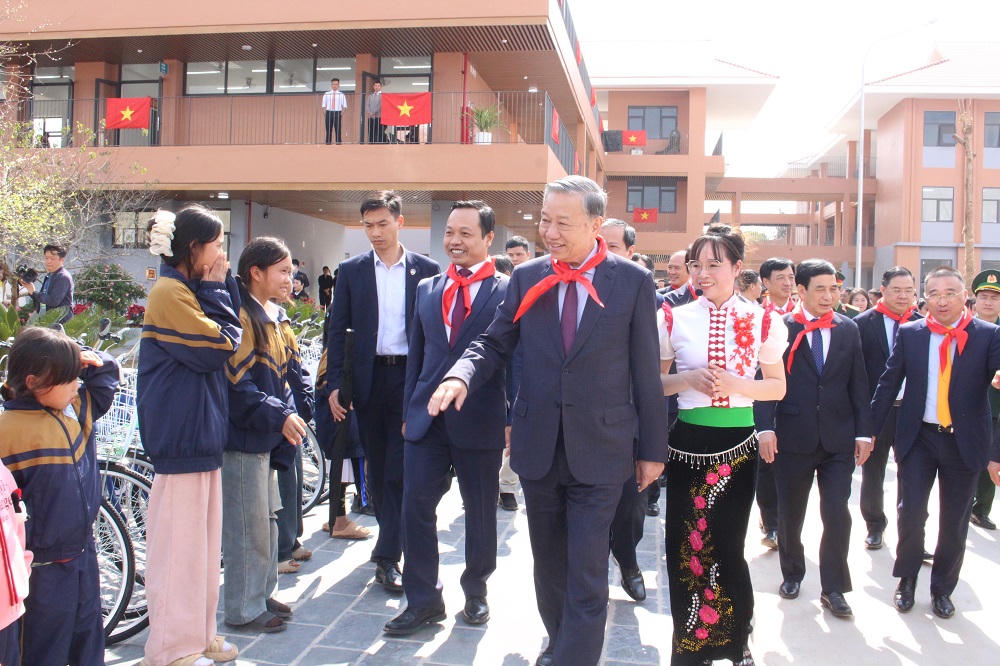 Phát biểu tại Lễ khánh thành, Tổng Bí thư Tô Lâm khẳng định, Đảng ta luôn xác định giáo dục và đào tạo là quốc sách hàng đầu, là nền tảng để phát triển đất nước nhanh và bền vững. Đối với các địa bàn biên giới, vùng sâu, vùng xa, giáo dục không chỉ là nâng cao dân trí, đào tạo nguồn nhân lực, mà còn là giải pháp căn cơ, lâu dài để giữ vững chủ quyền quốc gia từ gốc rễ – đó là con người, là cộng đồng dân cư gắn bó với đất đai, bản làng, đường biên, cột mốc.