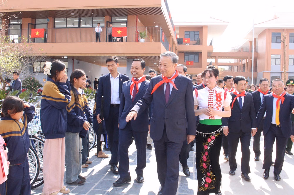 Tổng Bí thư nêu rõ, Đảng và Nhà nước sẽ tiếp tục nghiên cứu, mở rộng mô hình trường phổ thông nội trú liên cấp sang các khu vực không phải biên giới nhưng là vùng đặc biệt khó khăn, vùng có đông đồng bào dân tộc thiểu số, nhằm từng bước thu hẹp khoảng cách phát triển, bảo đảm công bằng trong tiếp cận giáo dục giữa các vùng, miền.