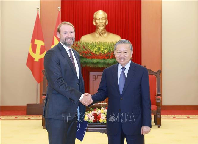 Tổng Bí thư Tô Lâm tiếp ông Nate Franklin, nhà sáng lập và Chủ tịch Tập đoàn Pacifico Energy (PE), Hoa Kỳ. Ảnh: Thống Nhất/TTXVN |