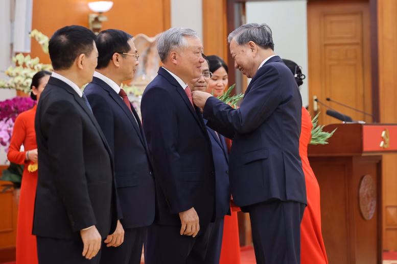 Tổng Bí thư Tô Lâm trao Huân chương Quân công hạng nhất và Huy hiệu Đảng tặng các đồng chí lãnh đạo, nguyên lãnh đạo