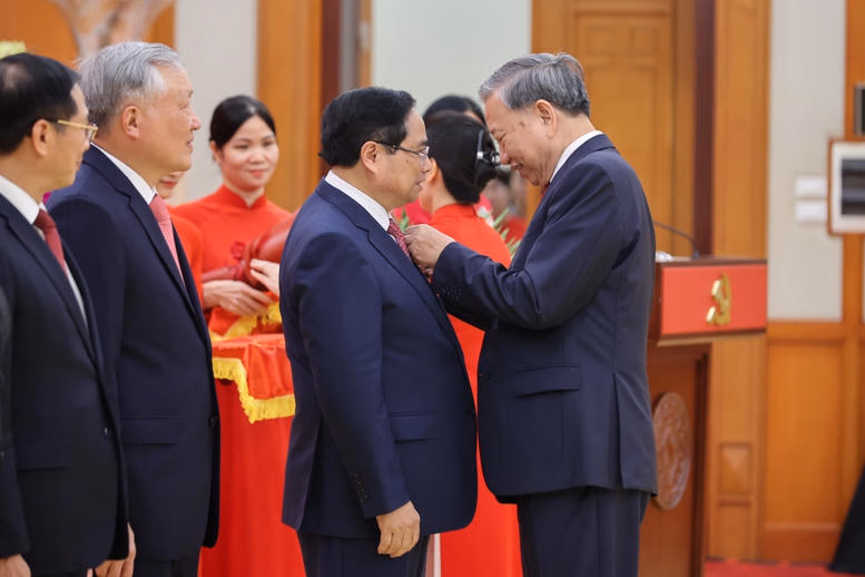 Tại buổi lễ, thay mặt lãnh đạo Đảng, Nhà nước, Tổng Bí thư Tô Lâm đã trao Huân chương Quân công hạng nhất và trao Huy hiệu 40 năm tuổi Đảng tặng đồng chí Phạm Minh Chính, Ủy viên Bộ Chính trị khóa XIII, Thủ tướng Chính phủ.