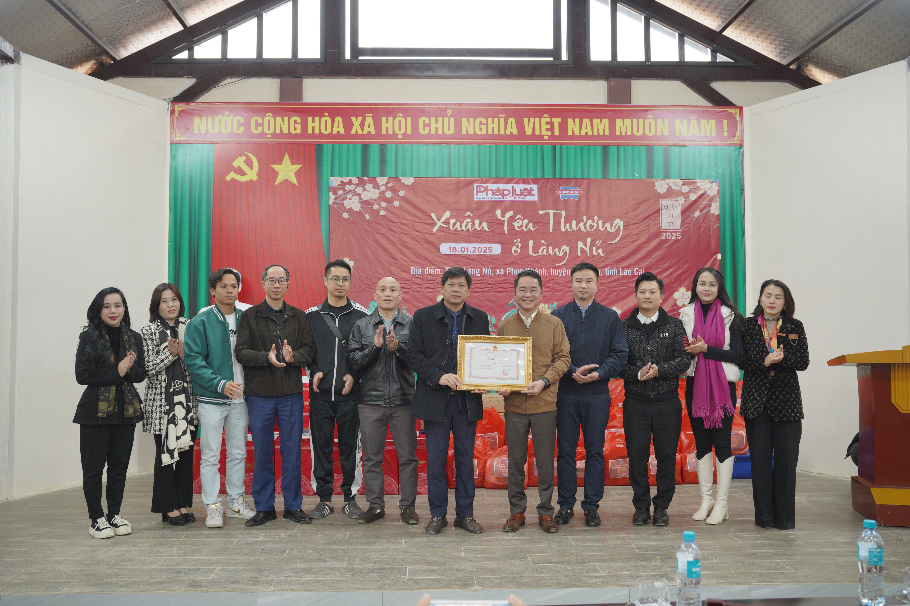 Báo Pháp Luật Việt Nam chia sẻ những yêu thương với bà con Làng Nủ trước thềm năm mới Ất Tỵ - 2025. Ảnh: Đức Tuyển |