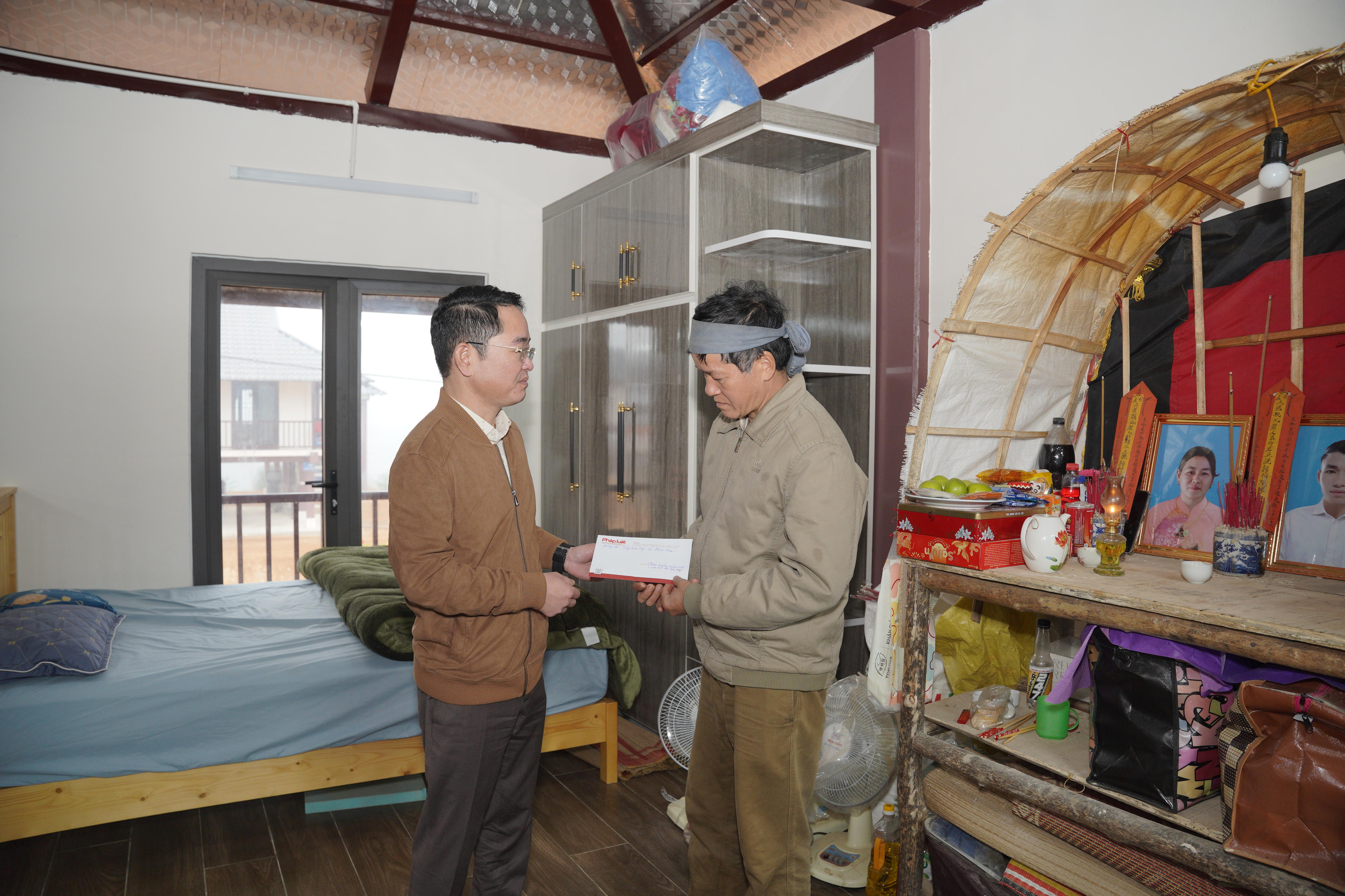 Tổng biên tập Báo Pháp Luật Việt Nam trao quà cho người dân Làng Nủ trong ngôi nhà mới. Ảnh: Đức Tuyển. |
