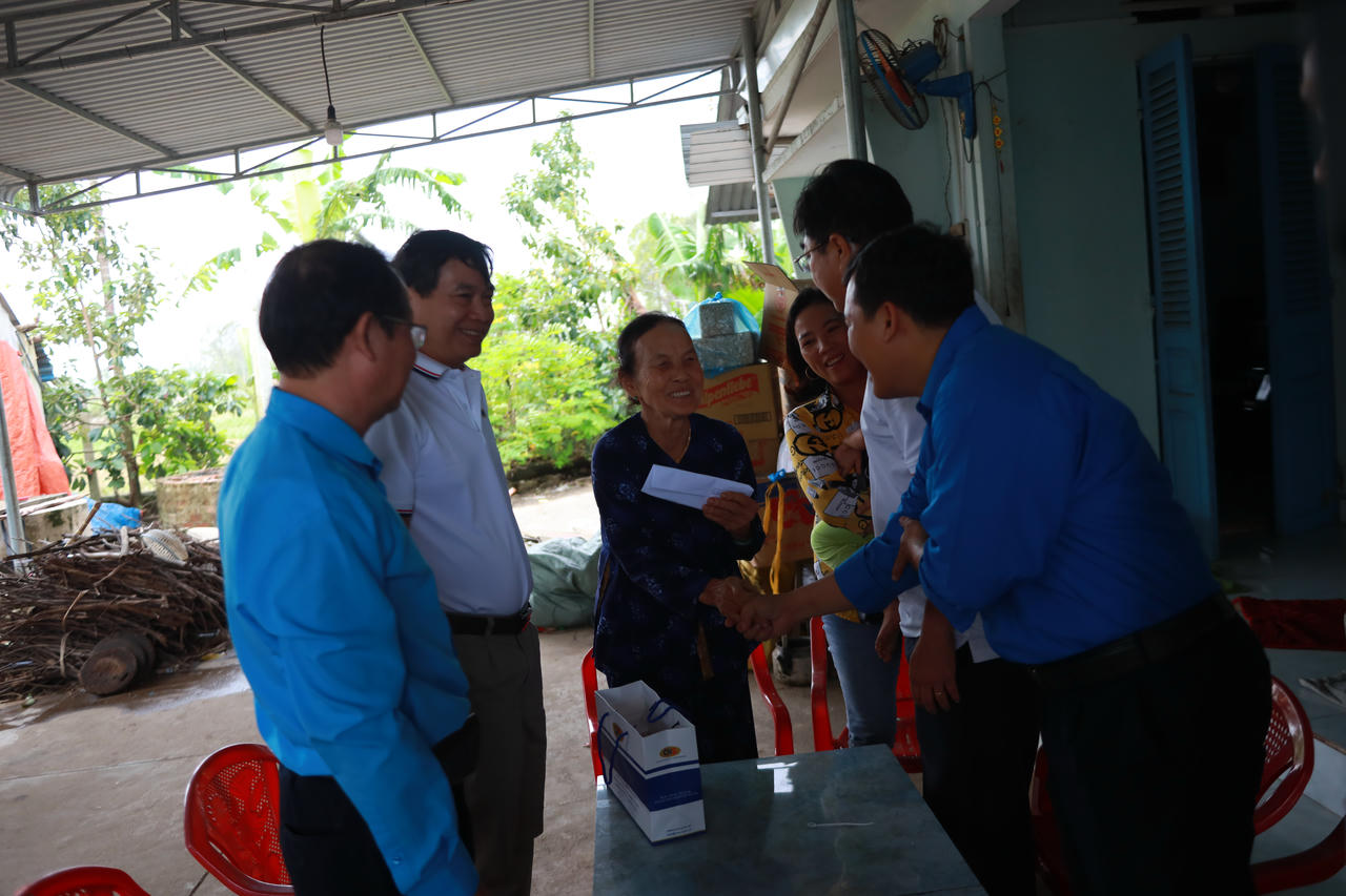 Sau đó, đoàn tới nhà bà Lê Thị Mẹo (85 tuổi) – bà ngoại của công nhân Nguyễn Văn Thái, bà Mẹo đón nhận phần quà và xúc động nói: “Món quà này đối với chúng tôi rất quý. Gia đình sẽ tiến hành sửa chữa ngay căn nhà của mình để kịp đón một cái Tết cho thật ấm áp”.