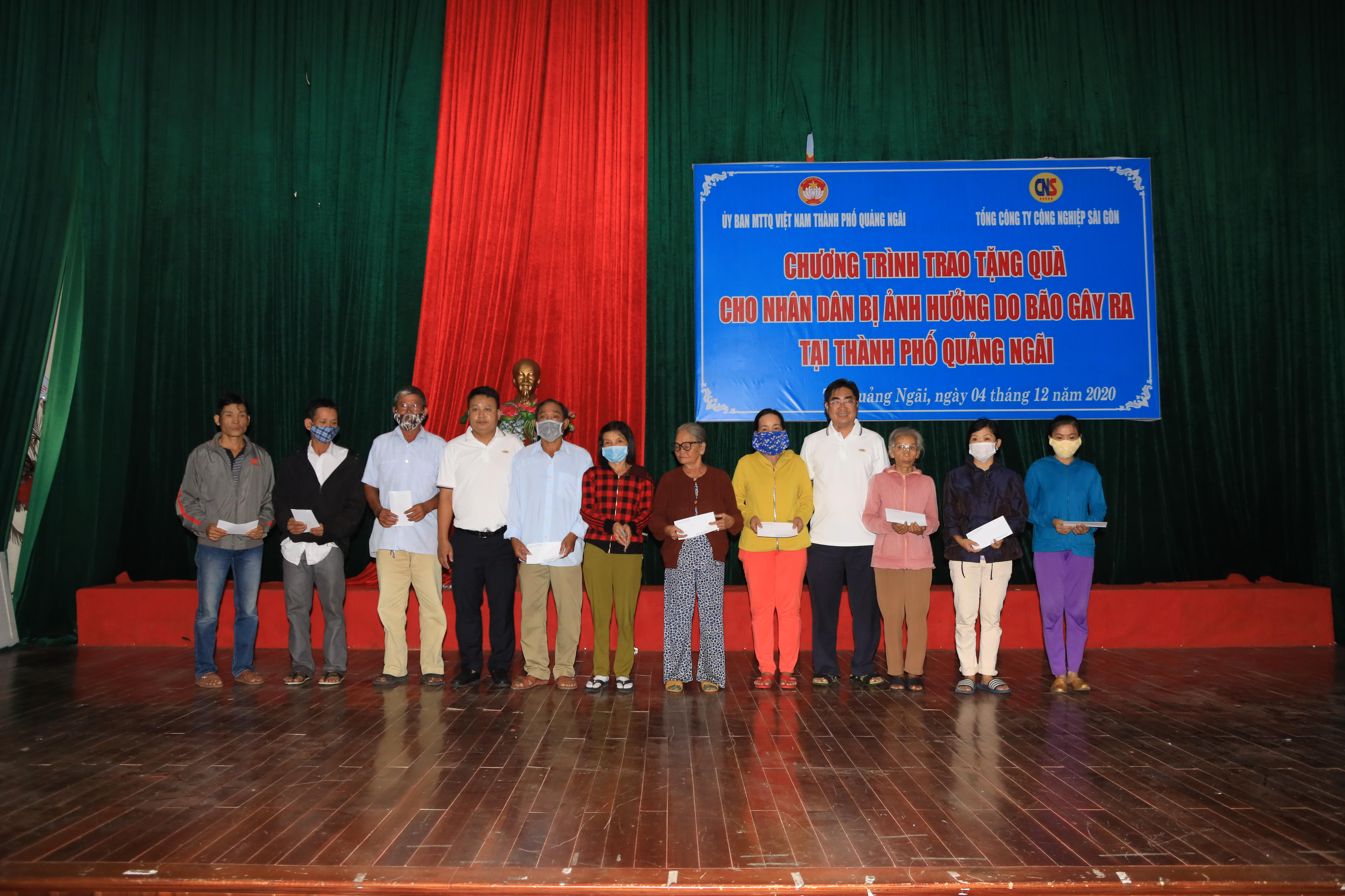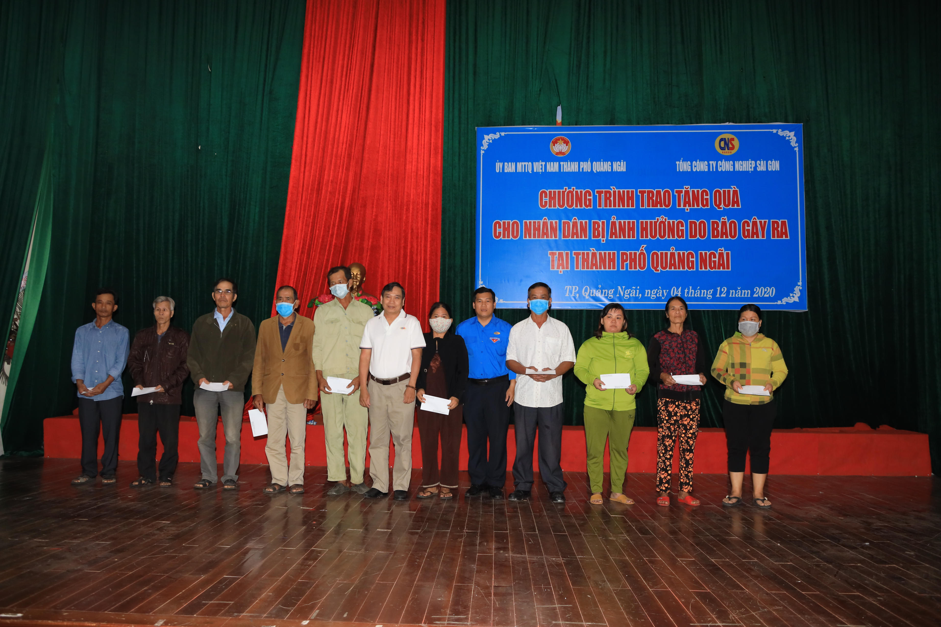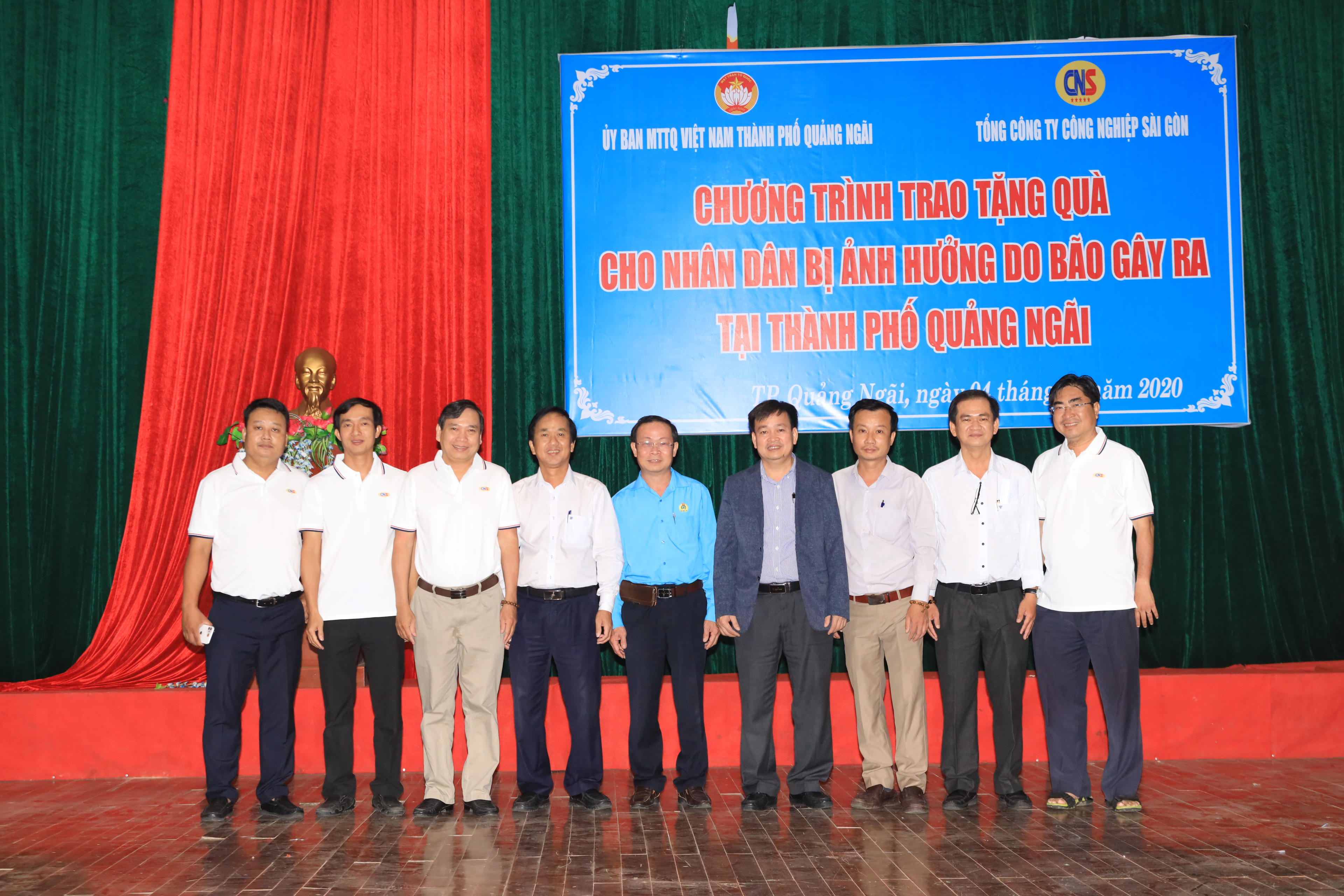 (PLVN) - Nằm trong chuỗi các hoạt động từ thiện xã hội, hỗ trợ cộng đồng, vượt qua đoạn đường dài khoảng 800km, sáng ngày 4/12/2020 Đoàn công tác của Tổng Công ty Công nghiệp Sài Gòn (CNS) đã có mặt ở Quảng Ngãi để phối hợp với Ủy ban MTTQ Việt Nam tỉnh Quảng Ngãi tổ chức chương trình Trao tặng quà cho bà con ở Thành phố Quảng Ngãi và Thị xã Đức Phổ bị ảnh hưởng do cơn bão số 9 gây ra.