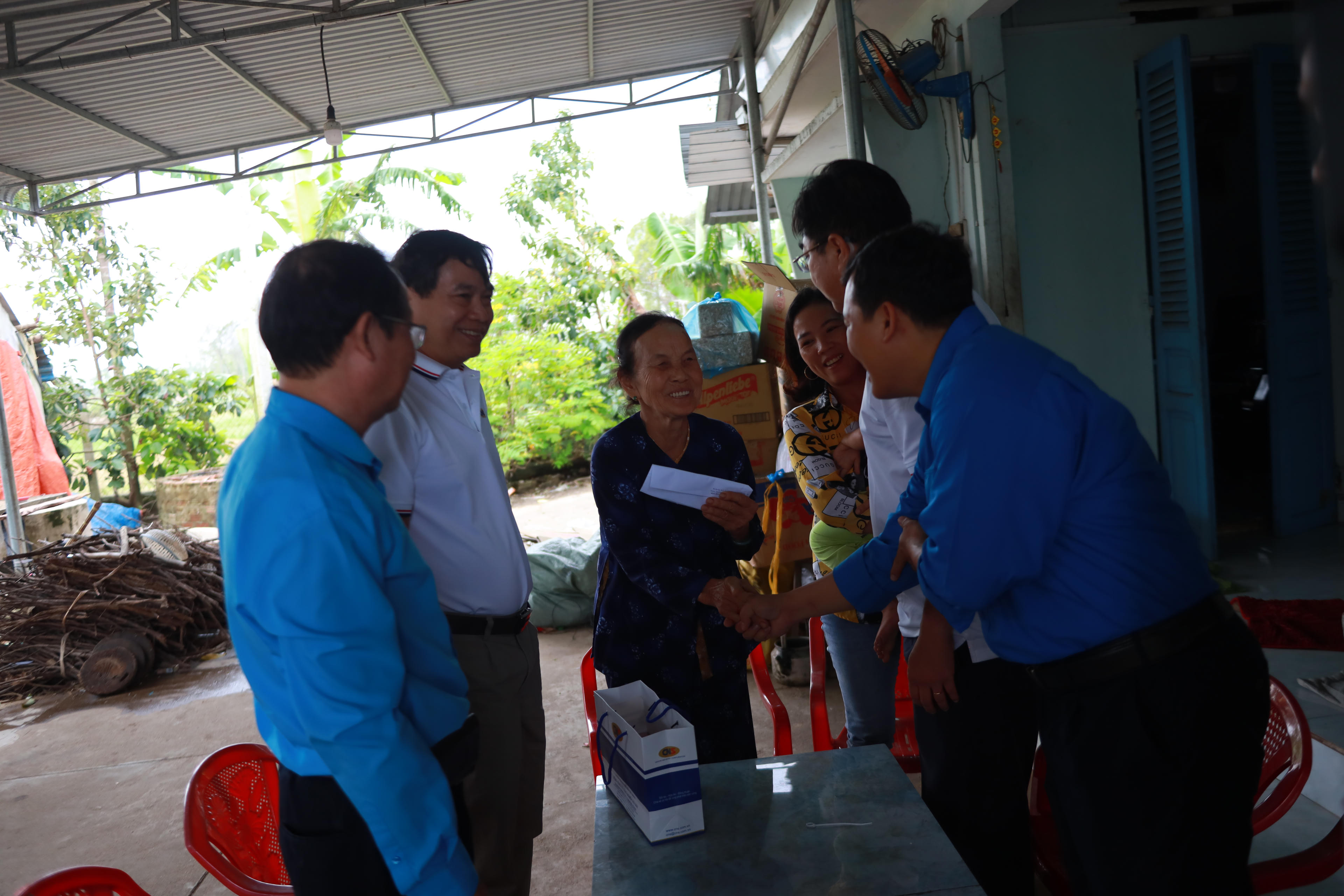 Ông Đào Văn Sửu (57 tuổi), làm nghề chạy xe ôm ở phường Nghĩa Chánh có nhà bị tốc mái, khi nhận được 2 triệu đồng từ đoàn cứu trợ, ông xúc động nói: “Tôi khó khăn nên nhận được quà từ nhà hảo tâm thì rất vui”. Còn bà Bùi Thị Sáu (68 tuổi) ở thôn Thống Nhất, xã Tịnh Ấn Tây thì nhà bị tốc mái chưa có tiền sửa lại. Bà Sáu cho biết đang che chắn ở tạm, mừng lắm khi nhận tiền hỗ trợ, sẽ vay mượn thêm để sửa nhà.