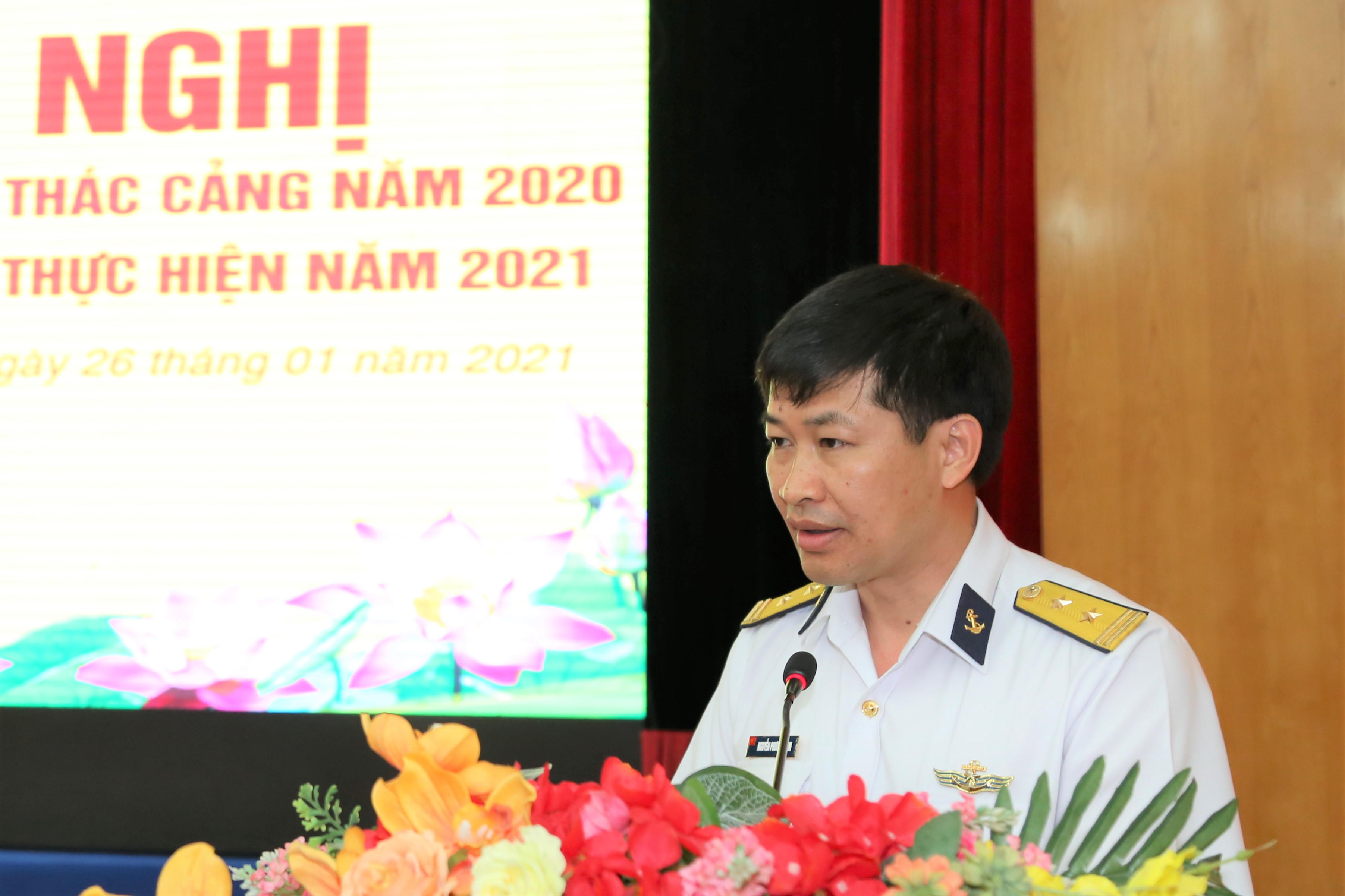 Phát biểu tại hội nghị, Trung tá Nguyễn Phương Nam - Phó Tổng Giám đốc đã biểu dương, đánh giá cao kết quả mà tập thể cán bộ, nhân viên - người lao động Tổng công ty đã đạt được, đặc biệt là đội ngũ trực tiếp làm công tác khai thác cảng của Tổng công ty trong năm 2020. Đồng chí Phó Tổng Giám đốc nhấn mạnh: Năm 2021, trước tình hình diễn biến của đại dịch covid-19 rất phức tạp, khó lường; sự cạnh tranh khai thác cảng diễn ra gay gắt, đòi hỏi mỗi cán bộ, nhân viên làm công tác khai thác cảng cần chủ động dự báo tình hình, nhạy bén, năng động hơn nữa;