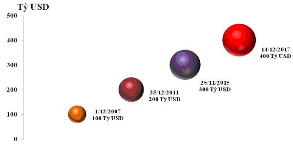 - Đến giữa tháng 12/2017, tổng kim ngạch xuất nhập khẩu đã chinh phục mức kỷ lục 400 tỷ USD.