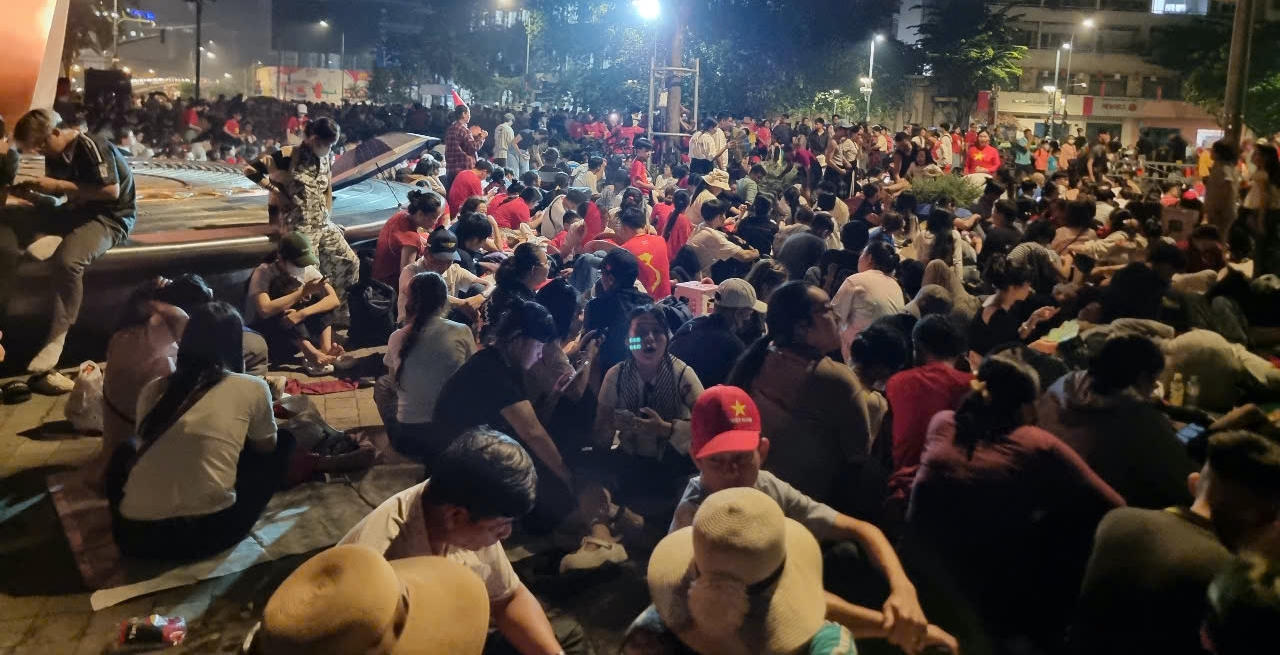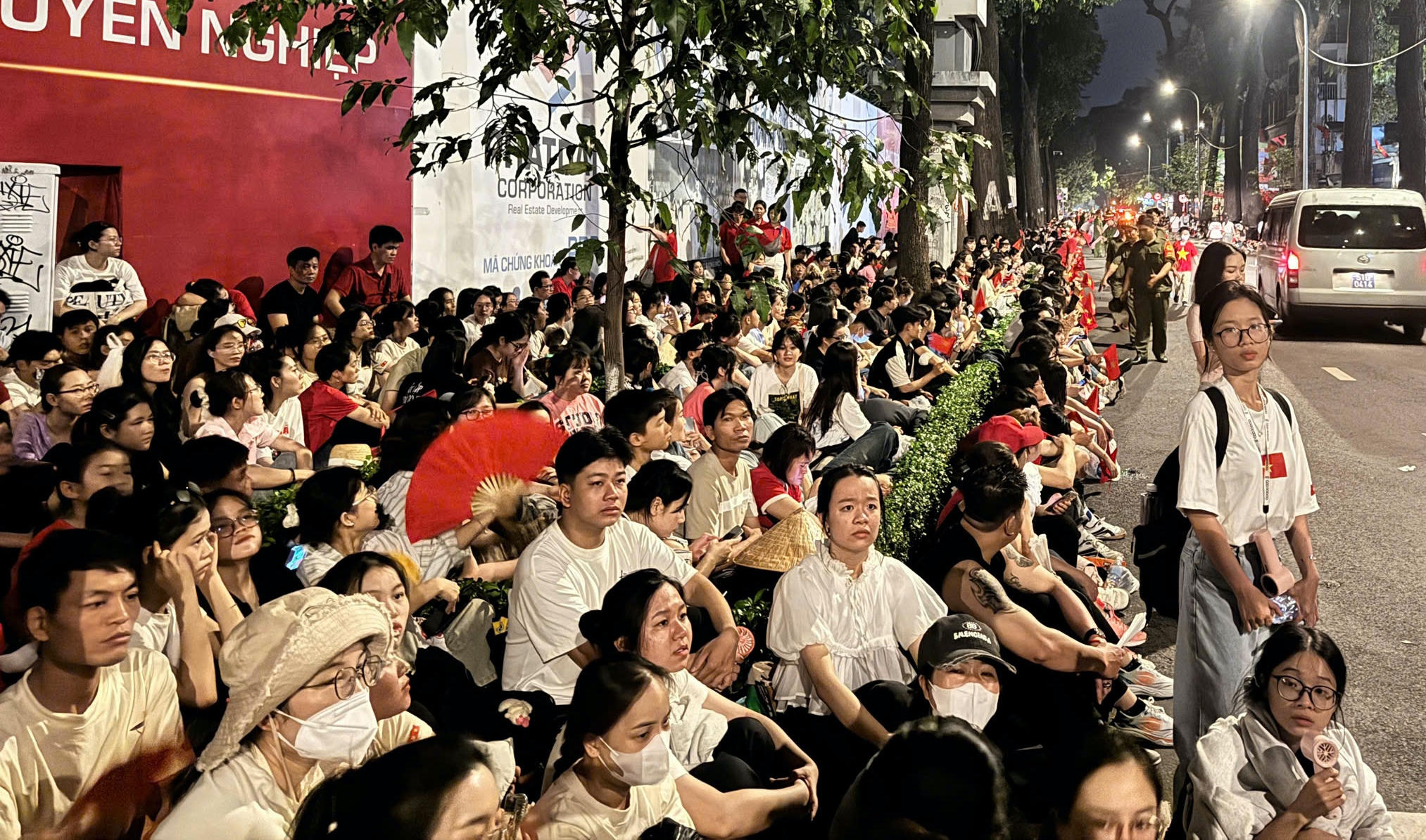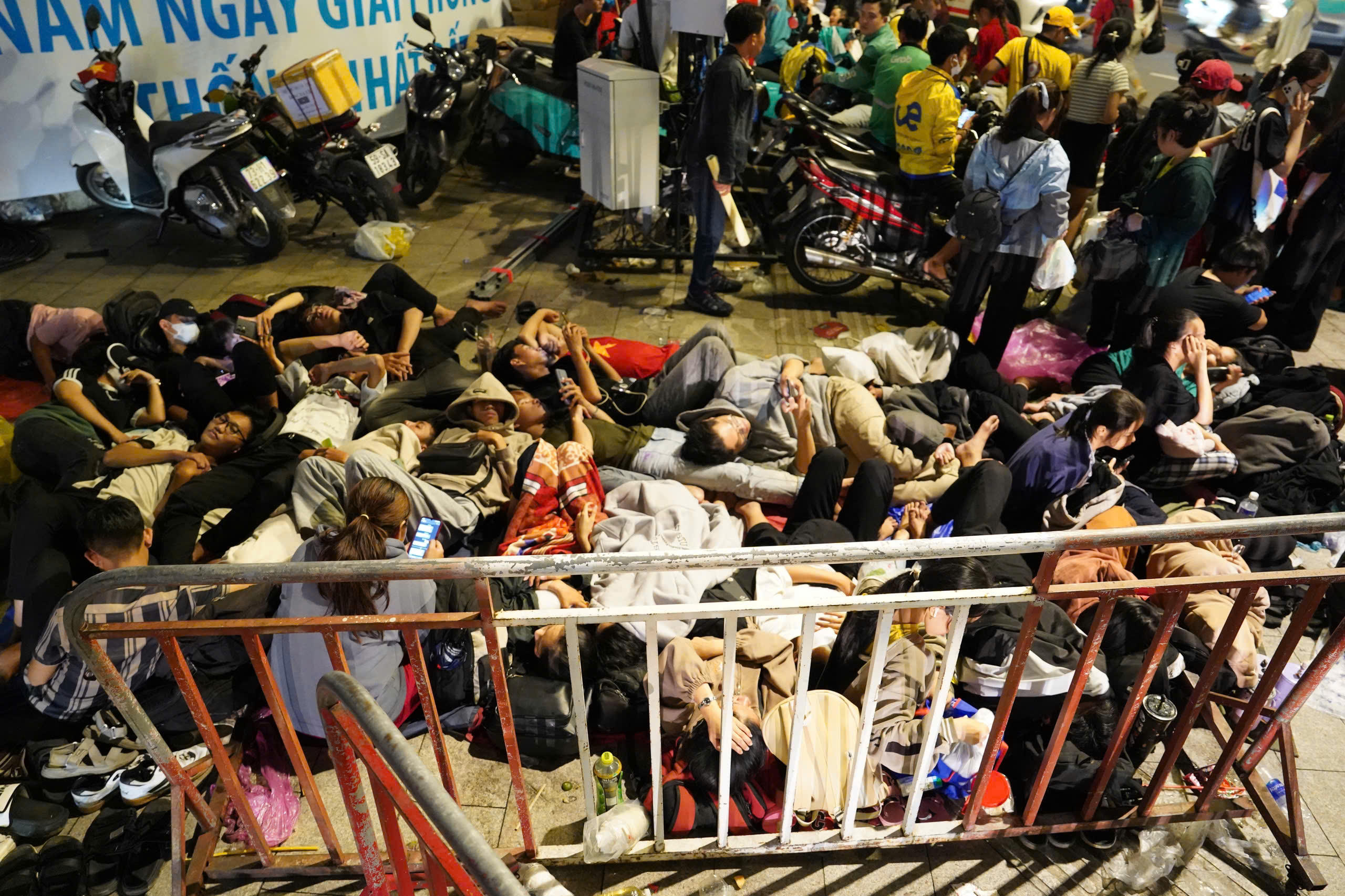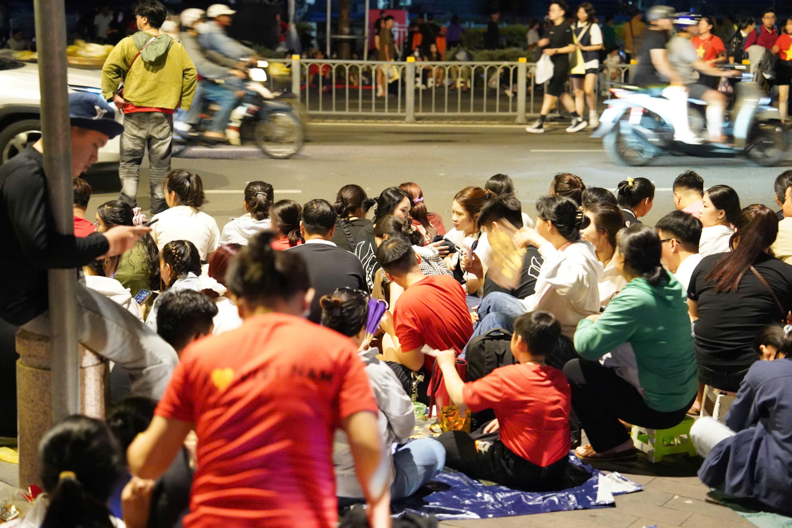 Từ tối 26/4, người dân đã “đóng đô” ở các tuyến đường trung tâm TP HCM để chờ xem buổi tổng duyệt diễu binh sáng 27/4. |