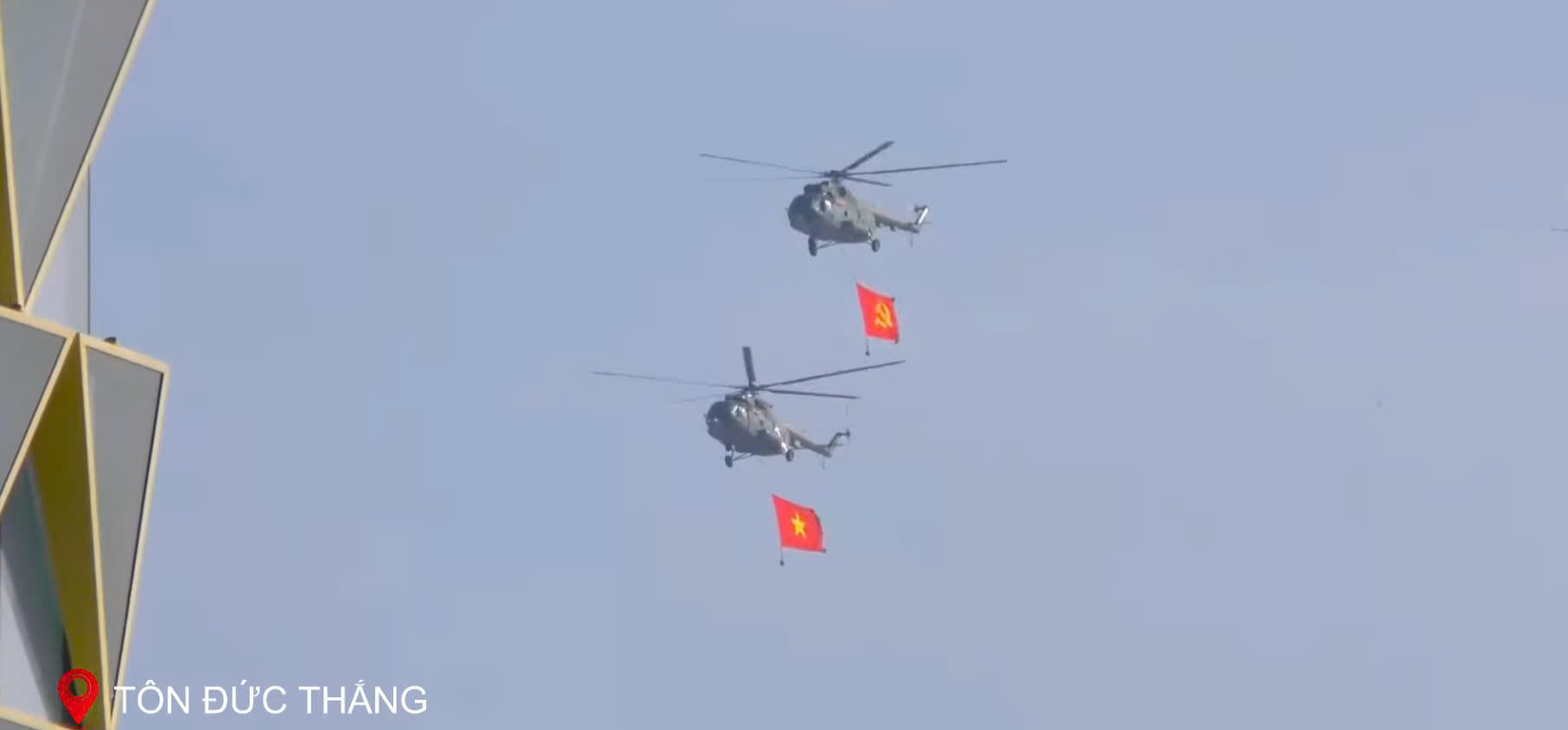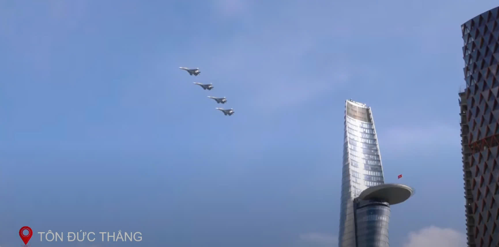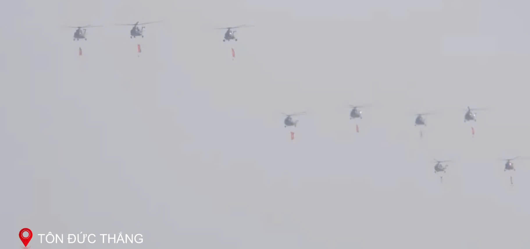 Trực thăng, tiêm kích tập hợp trên bầu trời TP HCM trong sự trầm trồ không ngớt của người xem. |