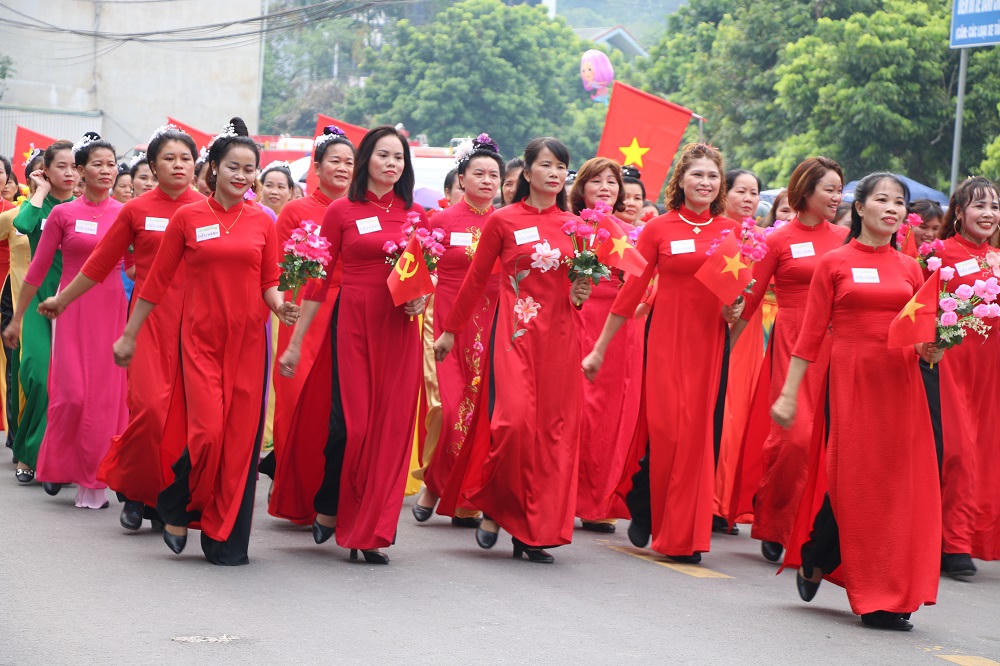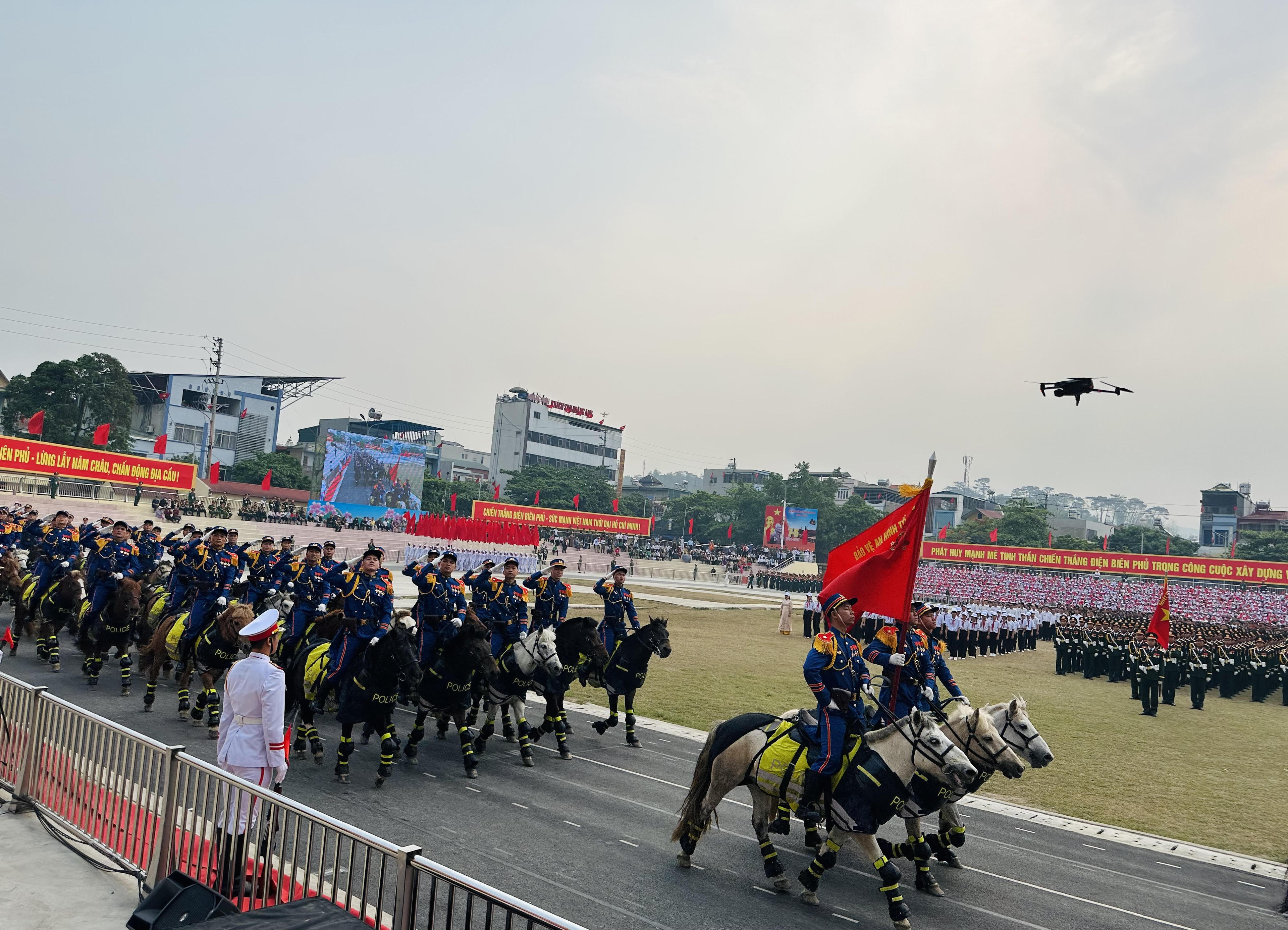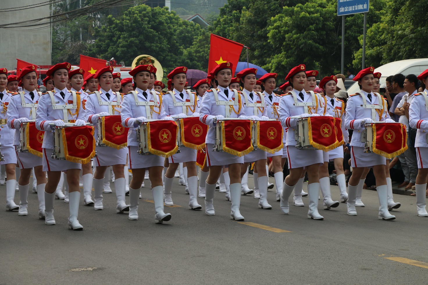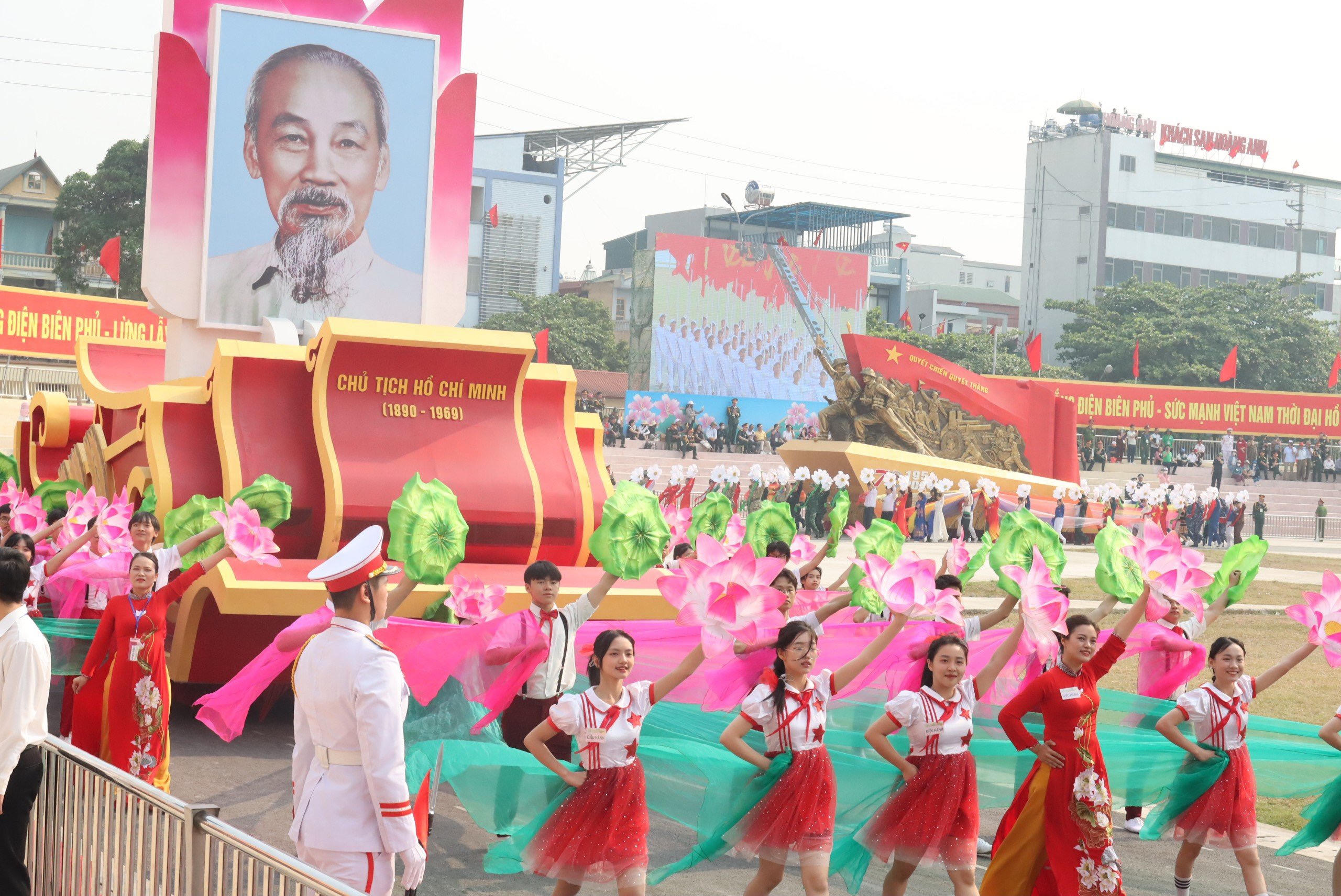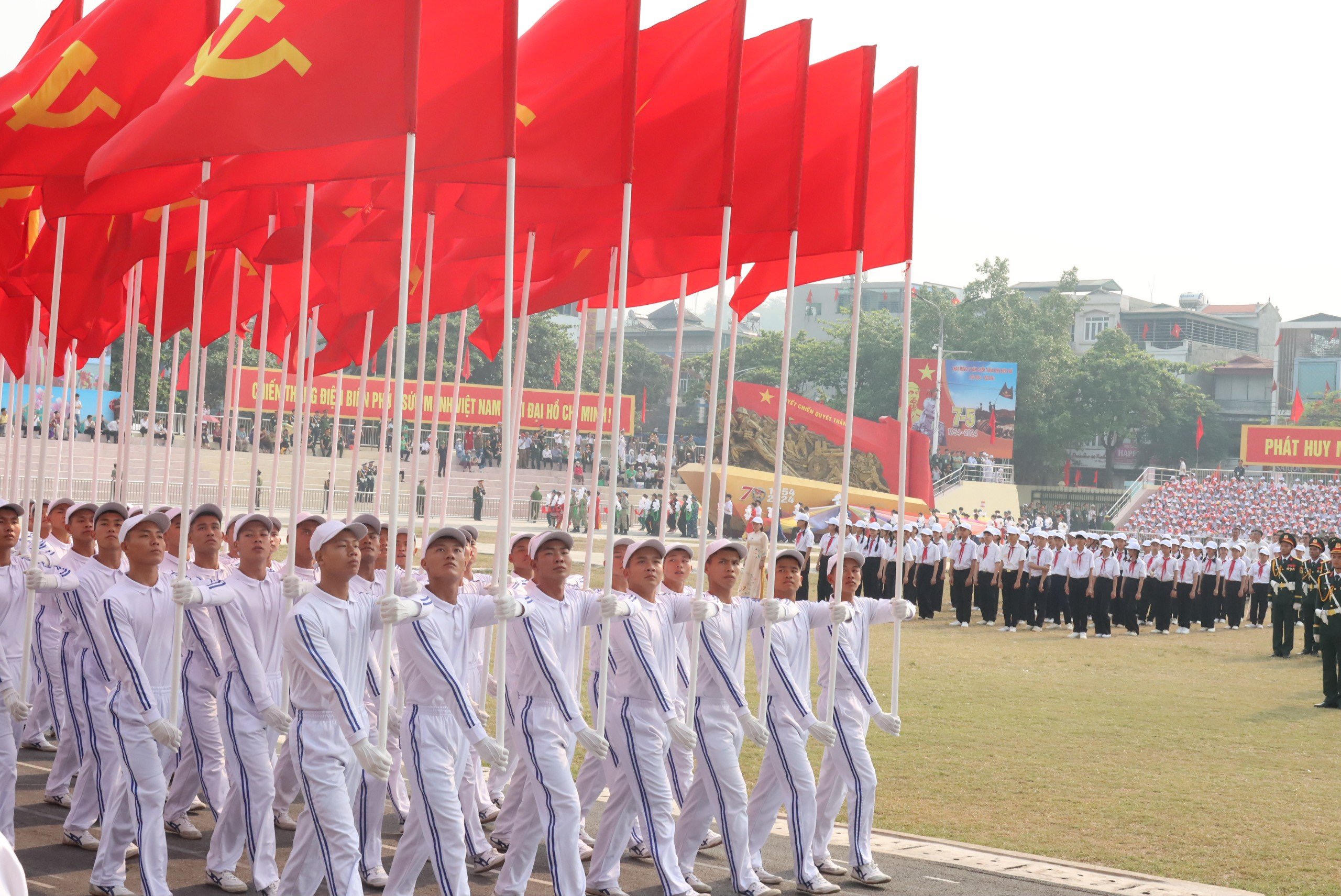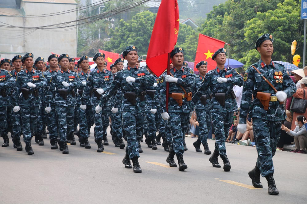 Các khối diễu binh, diễu hành đã đi dọc các con phố chính của thành phố Điện Biên Phủ: