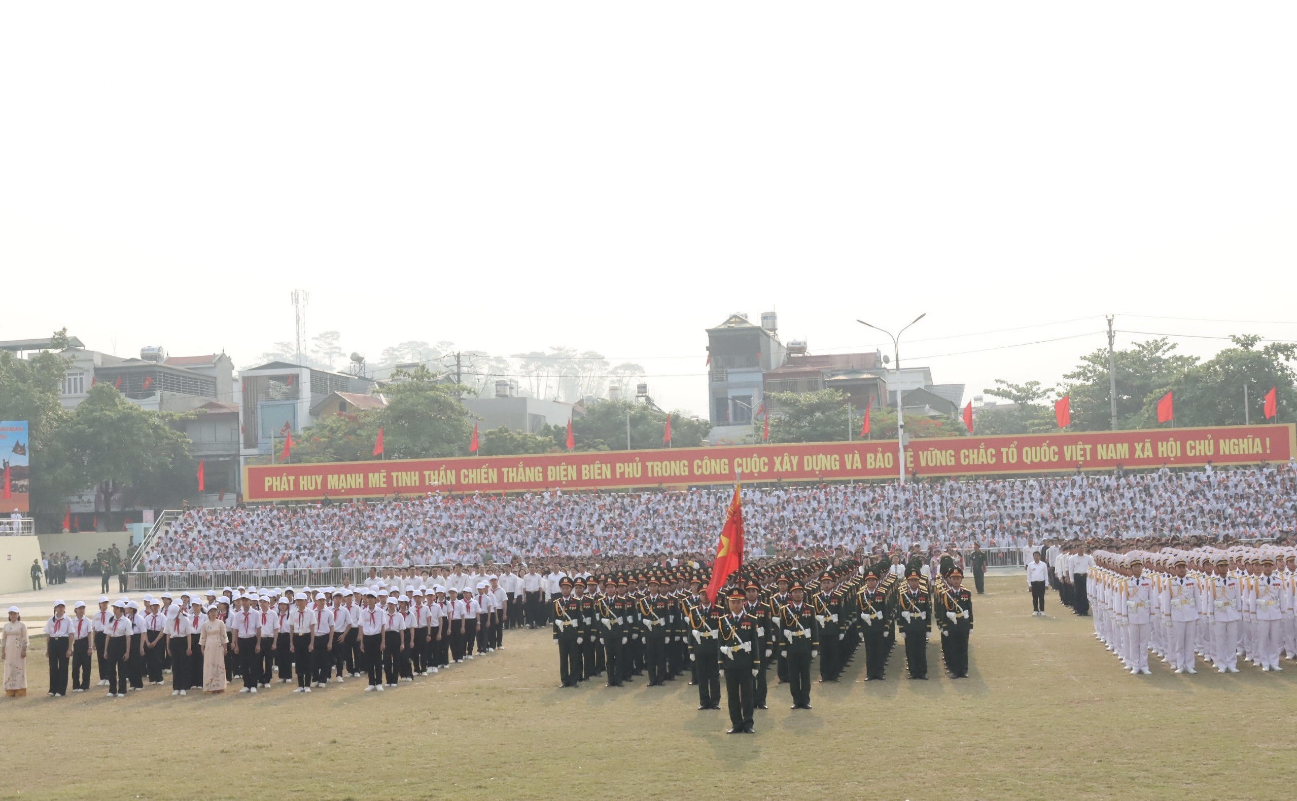 Ngay sau khi tiến hành tổng duyệt tại sân vận động, các khối diễu binh, diễu hành đã đi dọc các con phố chính của TP Điện Biên Phủ trong sự hân hoan, chào đón của người dân.
