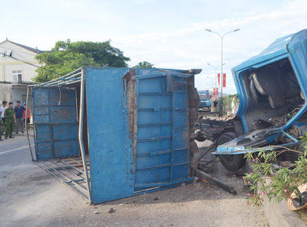 Khoảng 6h ngày 11/6, xe ô tô tải BKS 37C -013.45 chở theo hàng phế liệu chạy trên Quốc lộ 1A, khi đến đoạn qua xã Diễn Thịnh (Diễn Châu, Nghệ An) thì bất ngờ mất lái leo lên dải phân cách, rồi đâm thẳng vào cột đèn cao áp ở giữa đường.