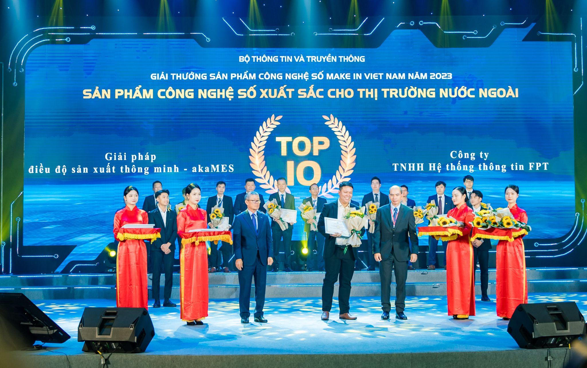 Tại Lễ công bố và trao Giải thưởng Sản phẩm công nghệ số Make in Viet Nam 2023, Bộ TT&TT đã vinh danh sản phẩm, dịch vụ, giải pháp Made by FPT đạt giải thưởng Make in Vietnam gồm: Sản phẩm Chip, akaMES; Confidon, FPT IDCheck. Đây cũng là hệ sinh thái sản phẩm, giải pháp “Công nghệ số kiến tạo doanh nghiệp số thông minh” được FPT trưng bày tại sự kiện.