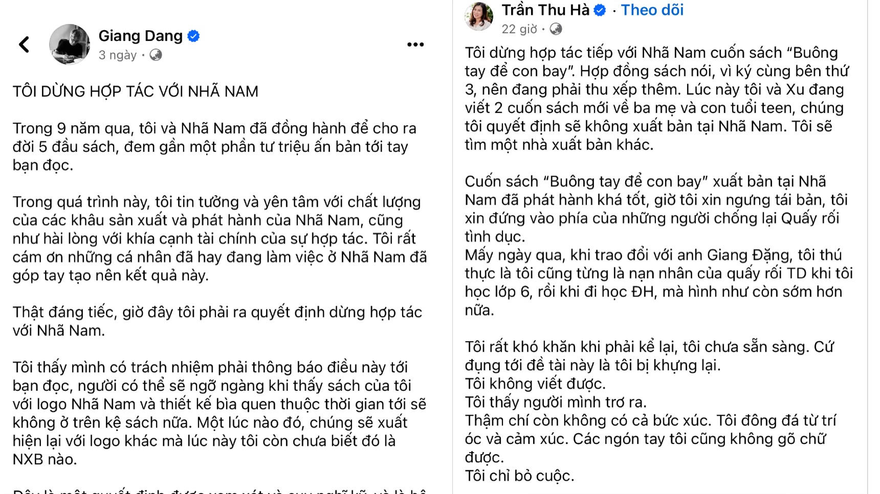Một số tác giả thông báo dừng hợp tác với Nhã Nam (Ảnh chụp màn hình) |