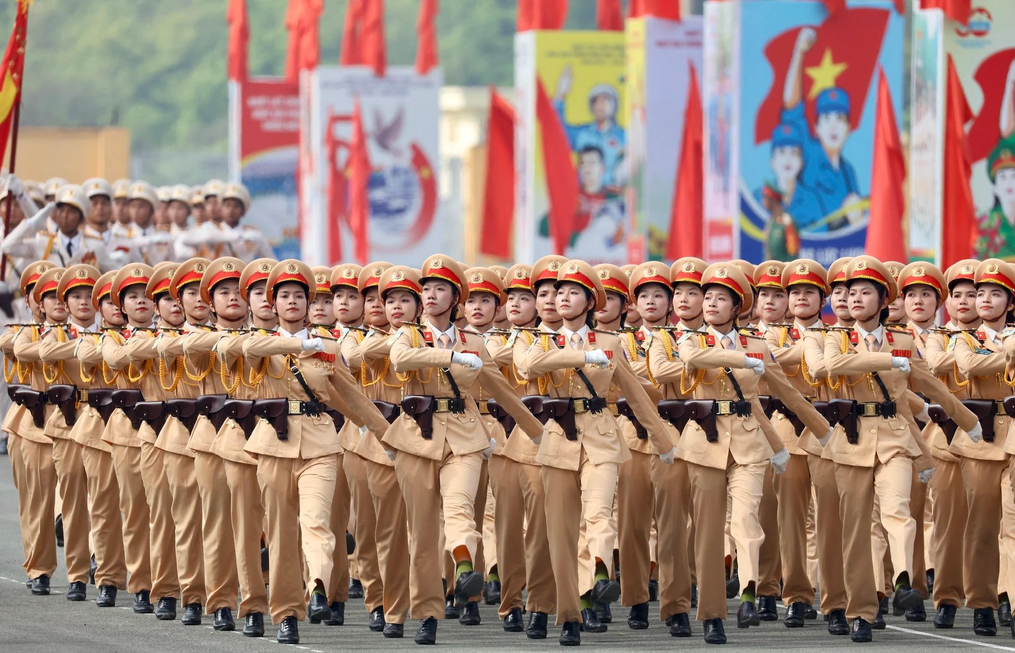 Khối nữ Cảnh sát giao thông. (Ảnh trong bài: Dũng Phương) |