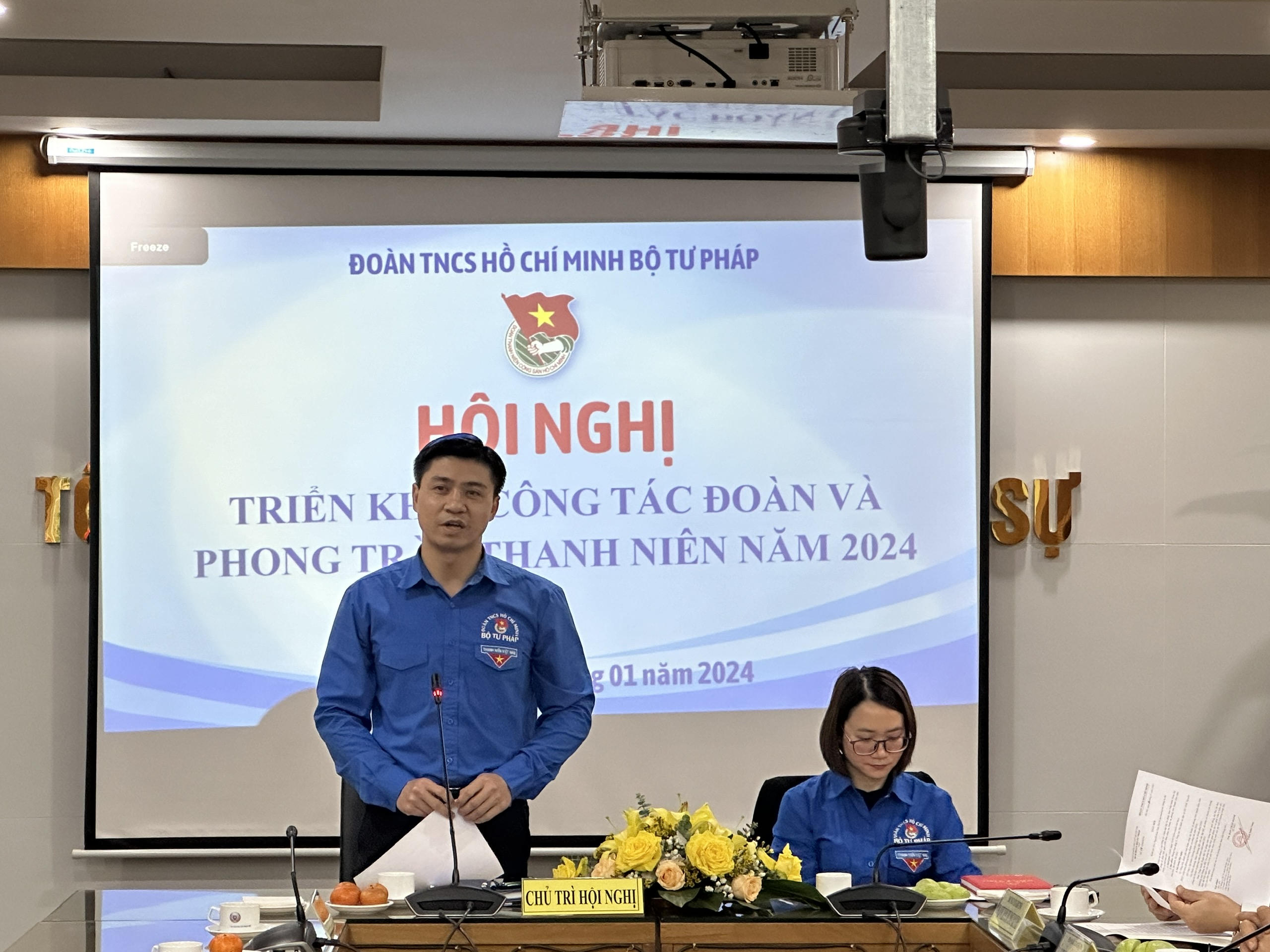 Đồng chủ trì hội nghị là đồng chí Trịnh Xuân Tùng, Ủy viên BCH Đoàn Khối, Bí thư Đoàn Bộ, và đồng chí Nguyễn Thị Ngân, Phó Bí thư Đoàn Bộ.