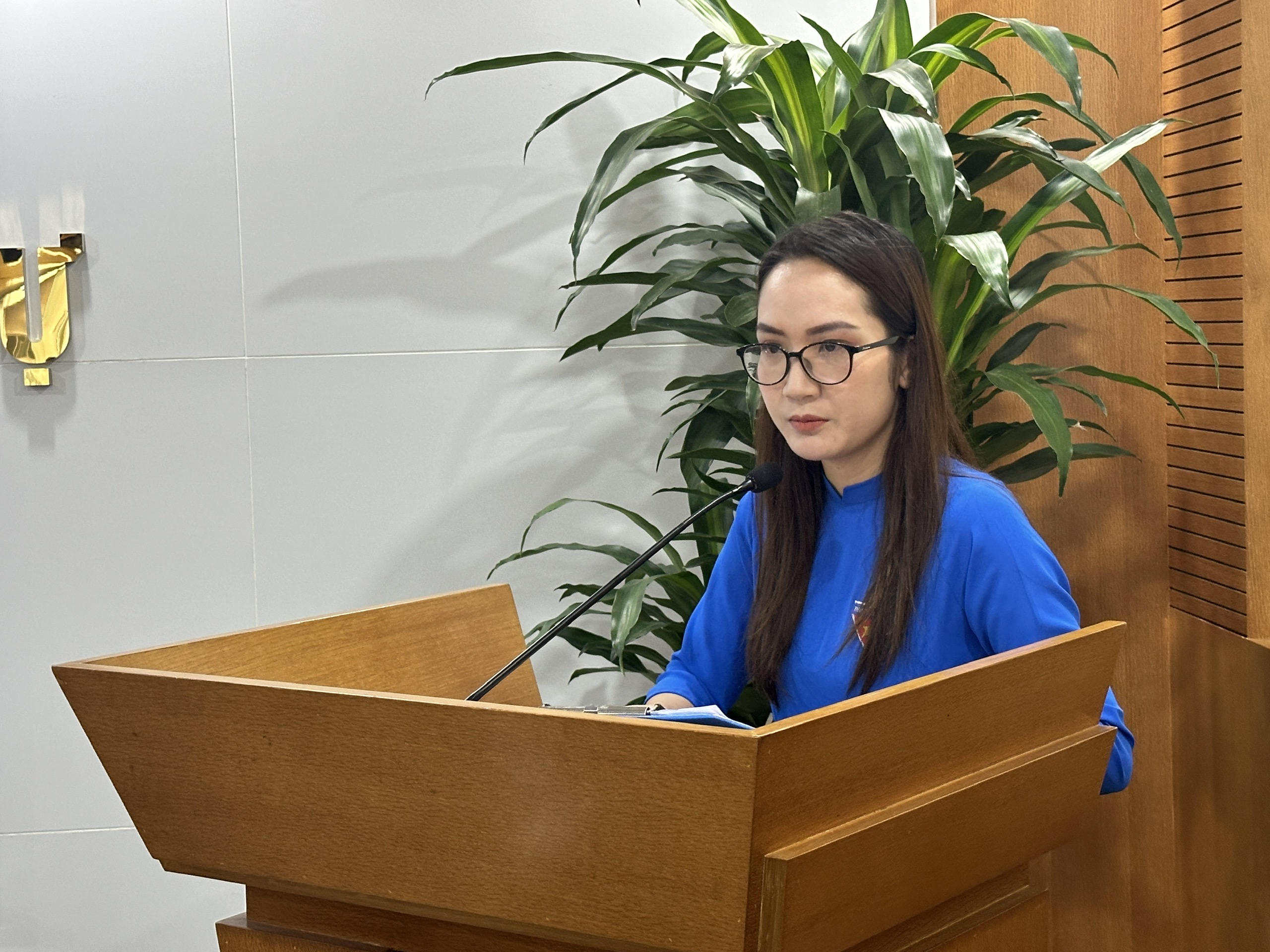 Đồng chí Lê Thu Thảo trình bày tóm tắt dự thảo Chương trình công tác Đoàn và phong trào thanh niên năm 2024 |