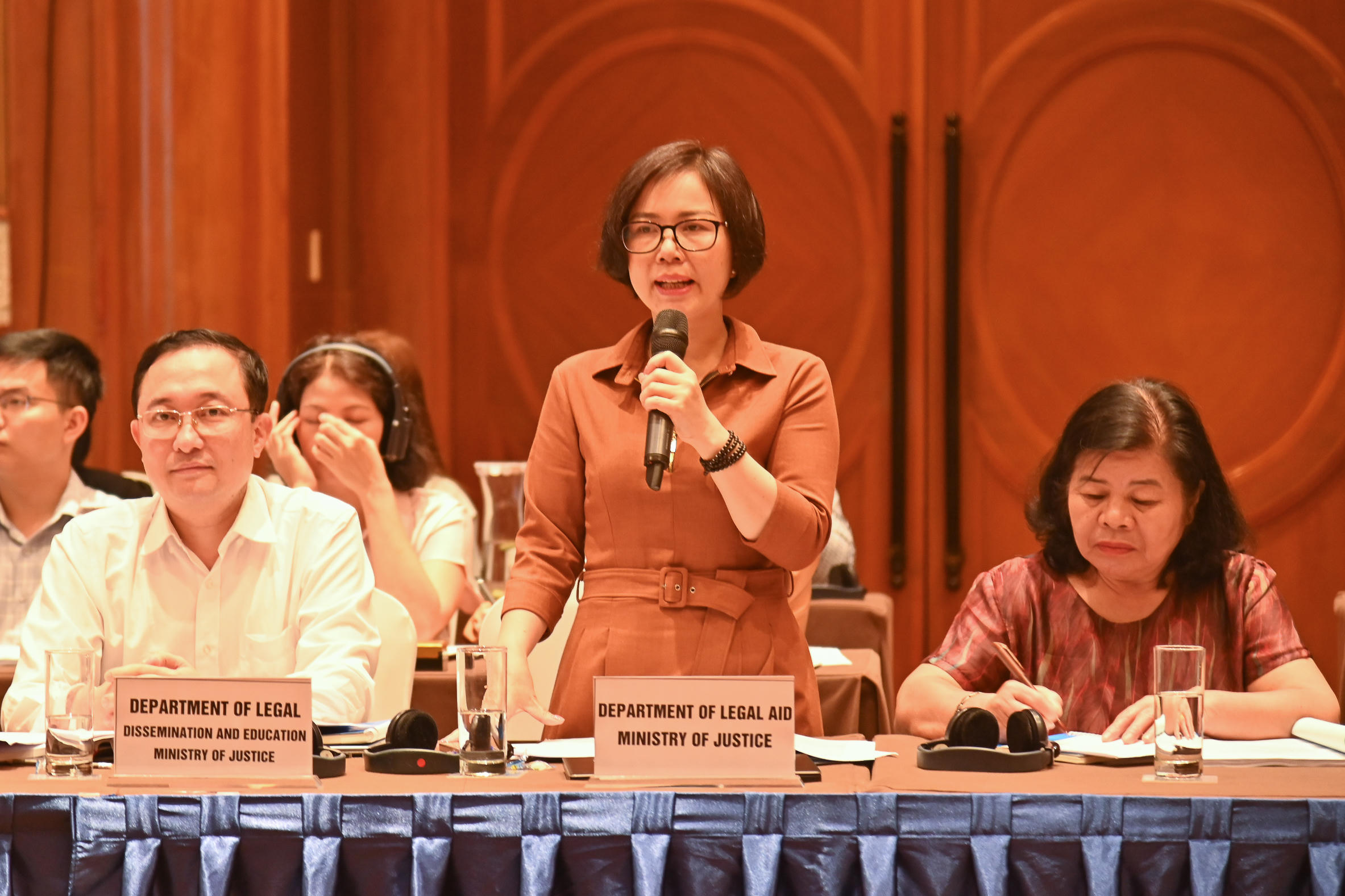 Bà Vũ Thị Hường, Phó Cục trưởng Cục Trợ giúp pháp lý, Bộ Tư pháp phát biểu. |