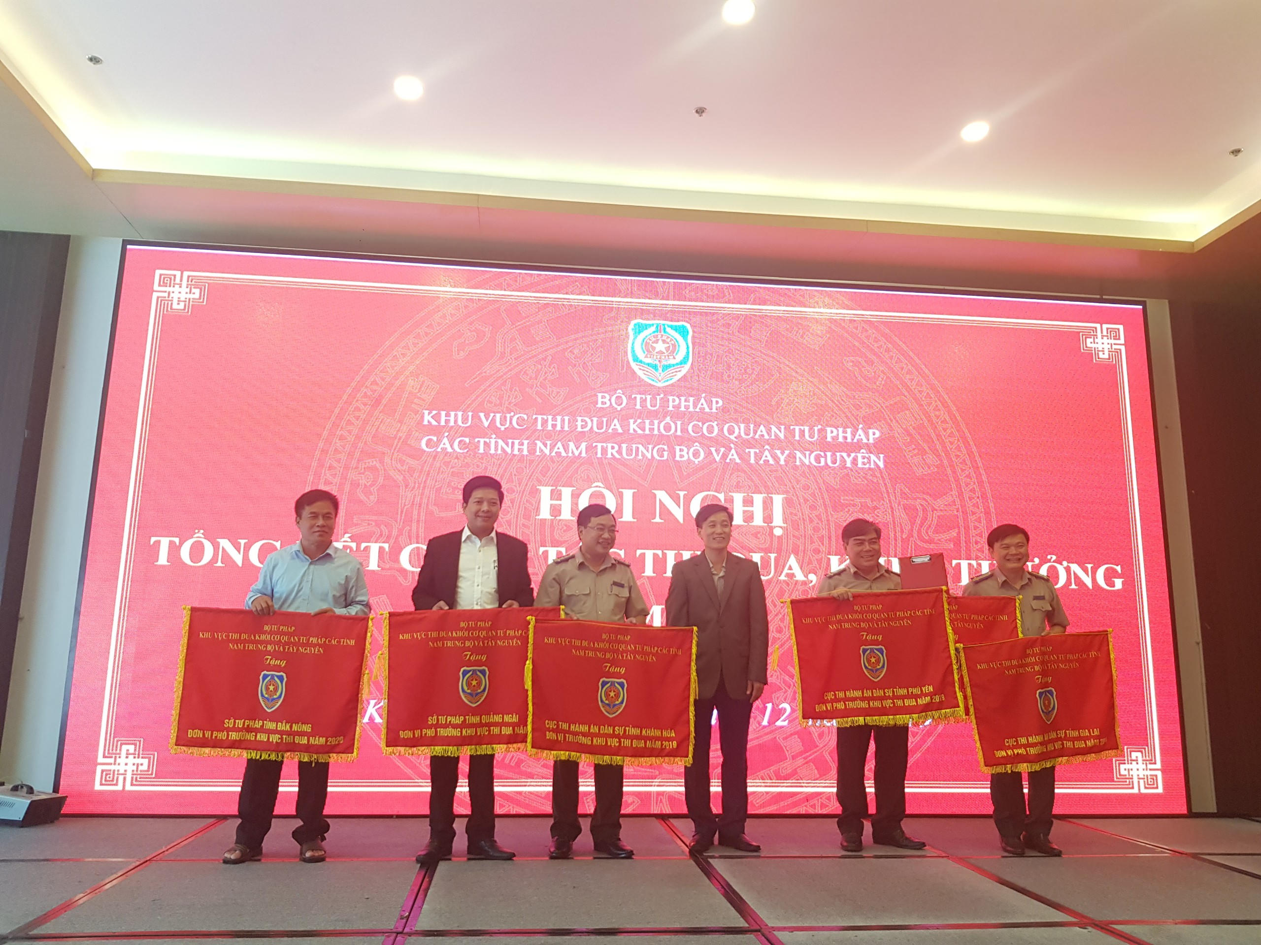Tại Hội nghị tổng kết, Khu vực thi đua đã tiến hành bình xét, suy tôn để đề nghị Bộ trưởng Bộ Tư pháp suy tôn tặng Cờ thi đua xuất sắc cho các tập thể có thành tích xuất sắc trong công tác tư pháp năm 2019 gồm 2 Sở Tư Pháp: Bình Định, Gia Lai; 2 Cục Thi hành án dân sự: Quảng Ngãi, Gia Lai và 8 chi cục các huyện.