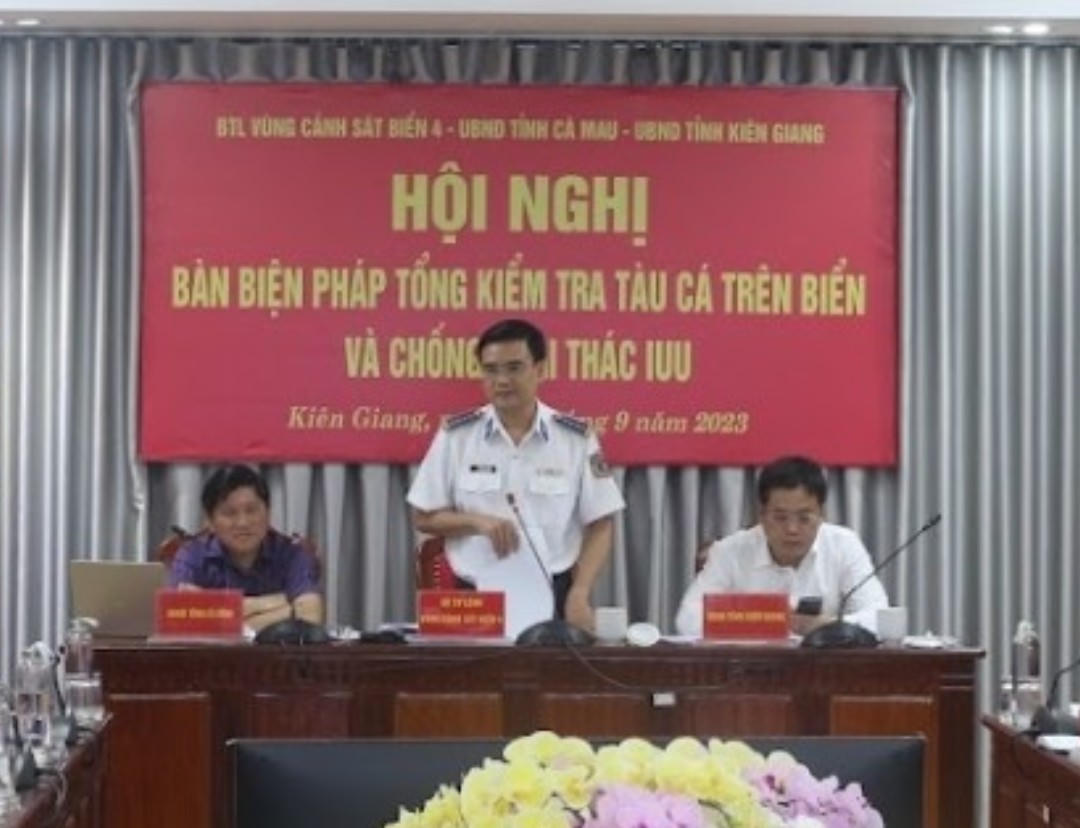 Tham dự và chủ trì hội nghị có Đại tá Trần Văn Lượng - Tư lệnh Vùng Cảnh sát biển 4, ông Lê Quốc Anh - Phó Chủ tịch UBND tỉnh Kiên Giang, ông Lê Văn Sử - Phó Chủ tịch UBND tỉnh Cà Mau; đại diện lãnh đạo Sở Nông nghiệp và Phát triển nông thôn, Công an, Sở Tư pháp, Bộ Chỉ huy Bộ đội Biên phòng của 2 tỉnh; lãnh đạo Bộ Tư lệnh Vùng 5 Hải quân, Chi cục Kiểm ngư Vùng 5, Hải đoàn 28 Biên phòng, cùng Ban Chỉ đạo IUU Bộ Tư lệnh Vùng Cảnh sát biển 4.