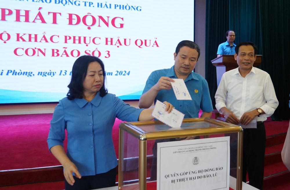 Tại đây, Tổng LĐLĐ Việt Nam trao kinh phí 454 triệu đồng hỗ trợ đoàn viên, CNVCLĐ TP Hải Phòng khắc phục hậu quả bão số 3. Liên đoàn Lao động TP Hải Phòng cũng phát động trong cán bộ, người lao động cơ quan tham gia ủng hộ đồng bào chịu thiệt hại cơn bão số 3.