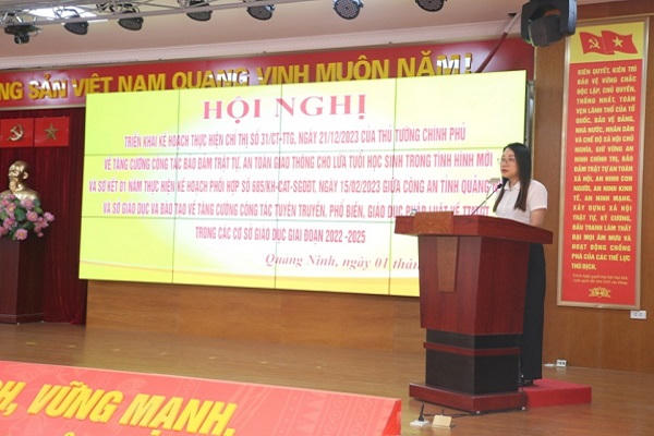 Phát biểu tại hội nghị, Phó Giám đốc Sở Giáo dục và Đào tạo tỉnh Quảng Ninh Châu Hoài Thu đề nghị lực lượng Công an tiếp tục phối hợp với các nhà trường đẩy mạnh đổi mới nâng cao hiệu quả công tác tuyên truyền, giáo dục phố biến quy tắc tham gia giao thông an toàn. Lãnh đạo phòng Giáo dục các địa phương và 58 trường có cấp trung học phổ thông tiếp tục thực hiện nghiêm các chỉ đạo và các giải pháp đảm bảo TTATGT cho lứa tuổi học sinh; tăng cường việc phối hợp, ràng buộc trách nhiệm của phụ huynh trong việc quản lý, giáo dục con em, giao phương tiện cho con em khi đủ tuổi, đủ điều kiện;