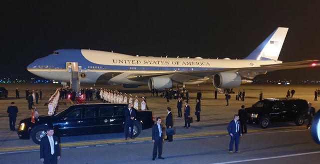 (PLVN) - Gần 9.00' tối nay 26/2, chuyên cơ Không Lực Một (Air Force One) chở Tổng thống Hoa Kỳ Donald Trump đã hạ cánh xuống sân bay Nội Bài, sớm hơn vài phút so với dự kiến ban đầu.